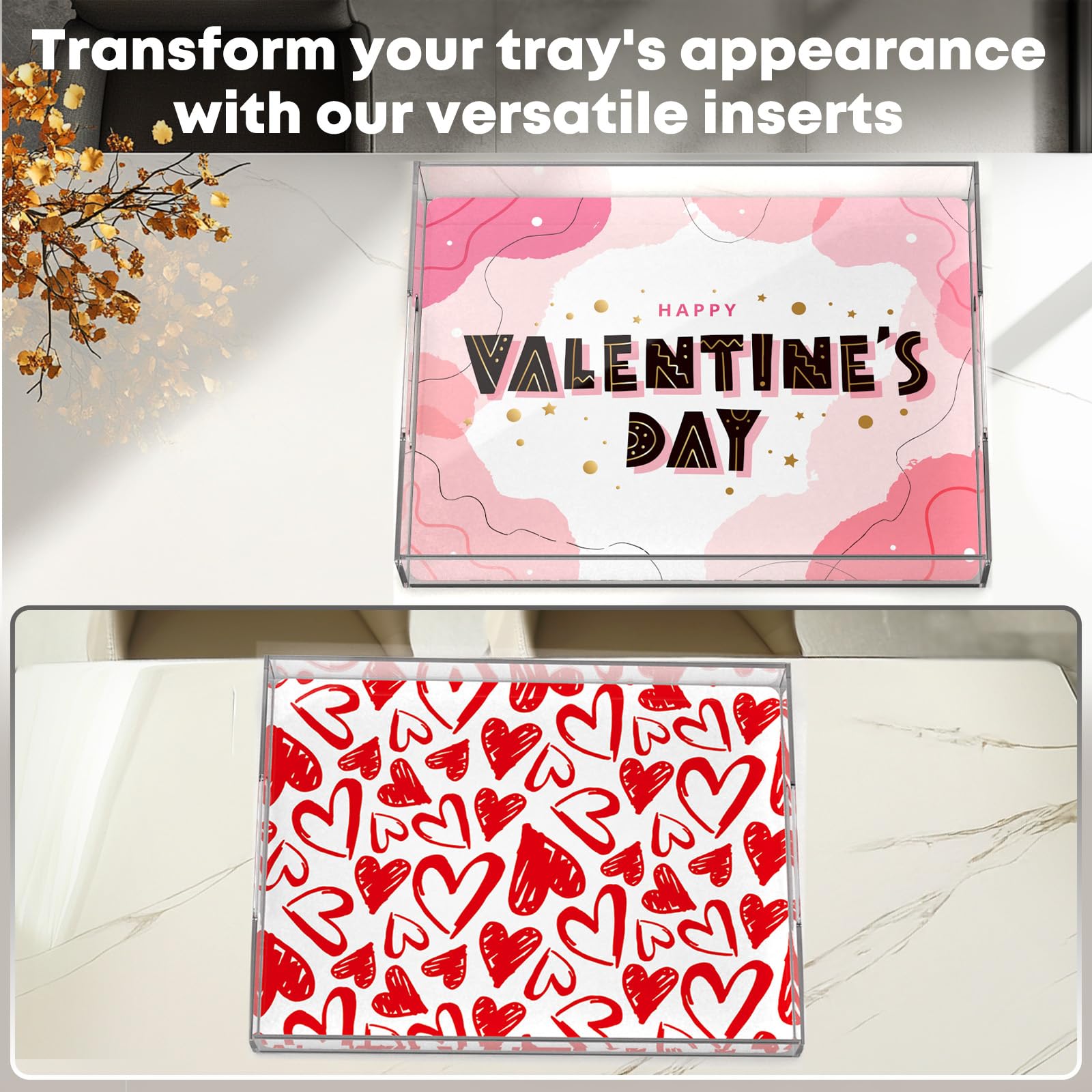 - STYLE YOUR TRAY with INTERCHANGEABLE INSERTS – Customize your tray with interchangeable decorative inserts to match your mood or occasion. When a plain tray feels too simple, add a touch of personality! The heart-themed insert makes it a warm and thoughtful gift for couples, perfect for anniversaries, Valentine's Day, or couple room decor.
