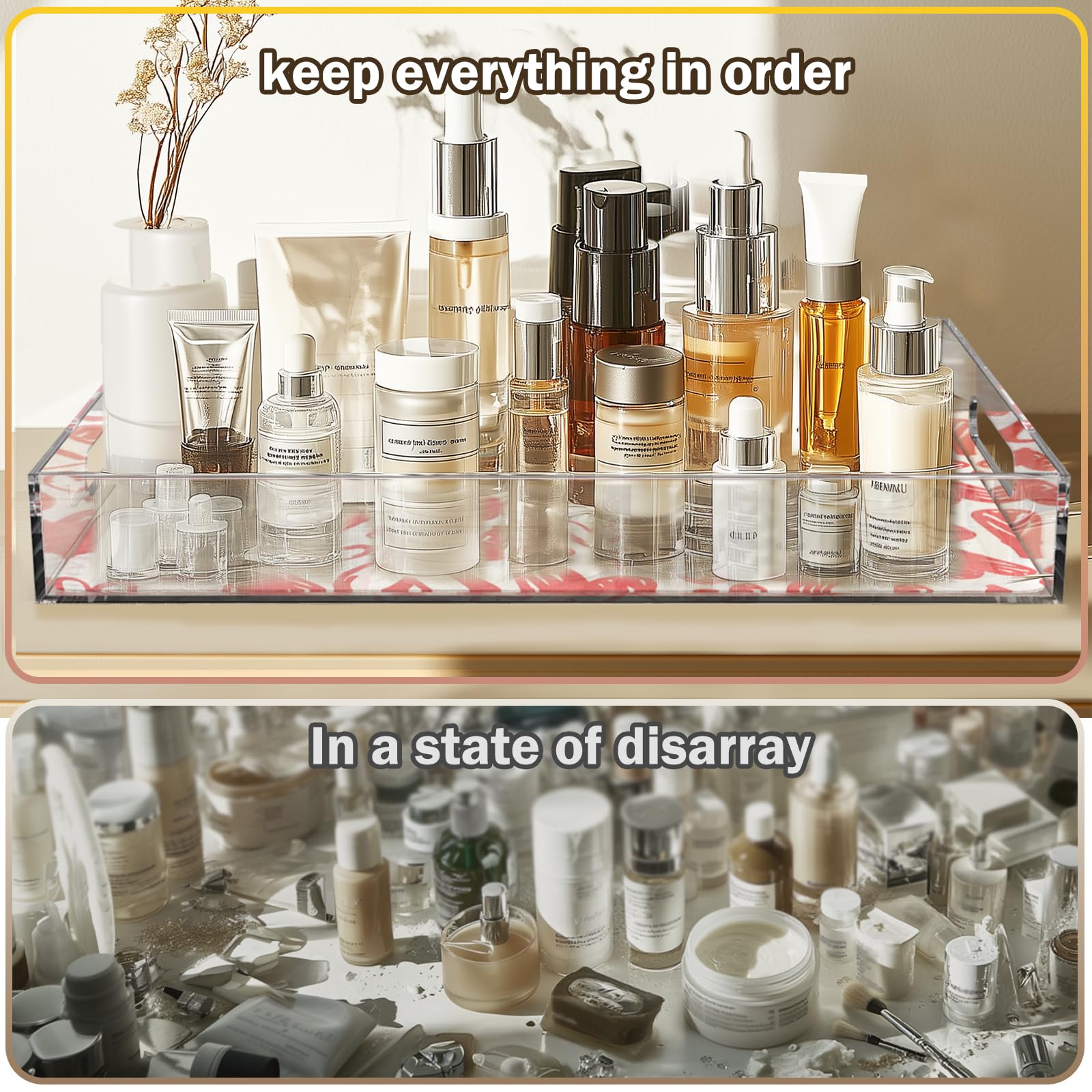 - ADD a CONTEMPORARY TOUCH – Rectangle clear trays for organizing have sleek surface with internally crafted handles to enhance stability. It’s ideal dimensions & weight make clear acrylic tray beyond compare.
