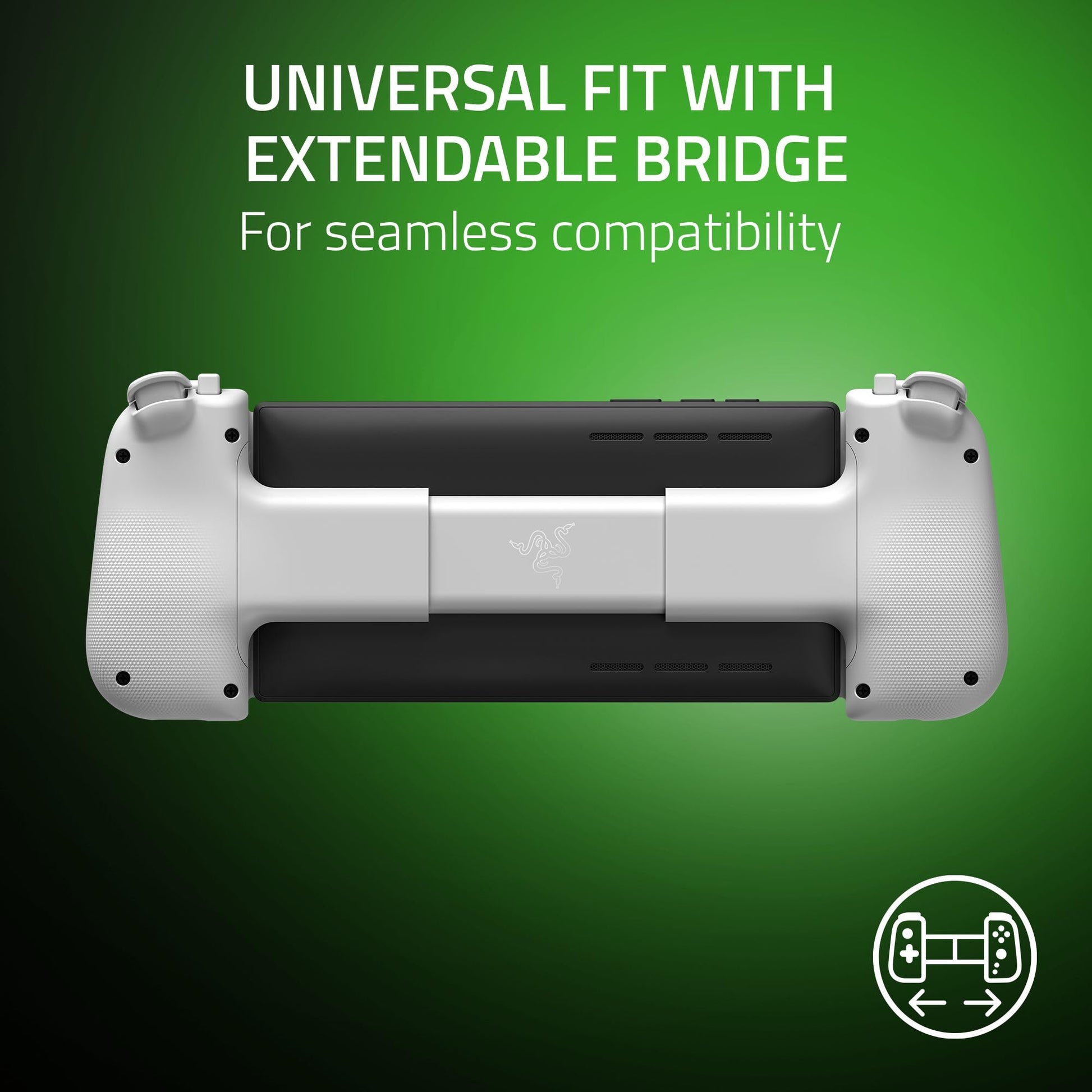 - UNIVERSAL FIT WITH EXTENDABLE BRIDGE — Features a stable, extendable bridge that perfectly holds the most popular Android smartphones, providing a secure fit that won’t come loose while gaming