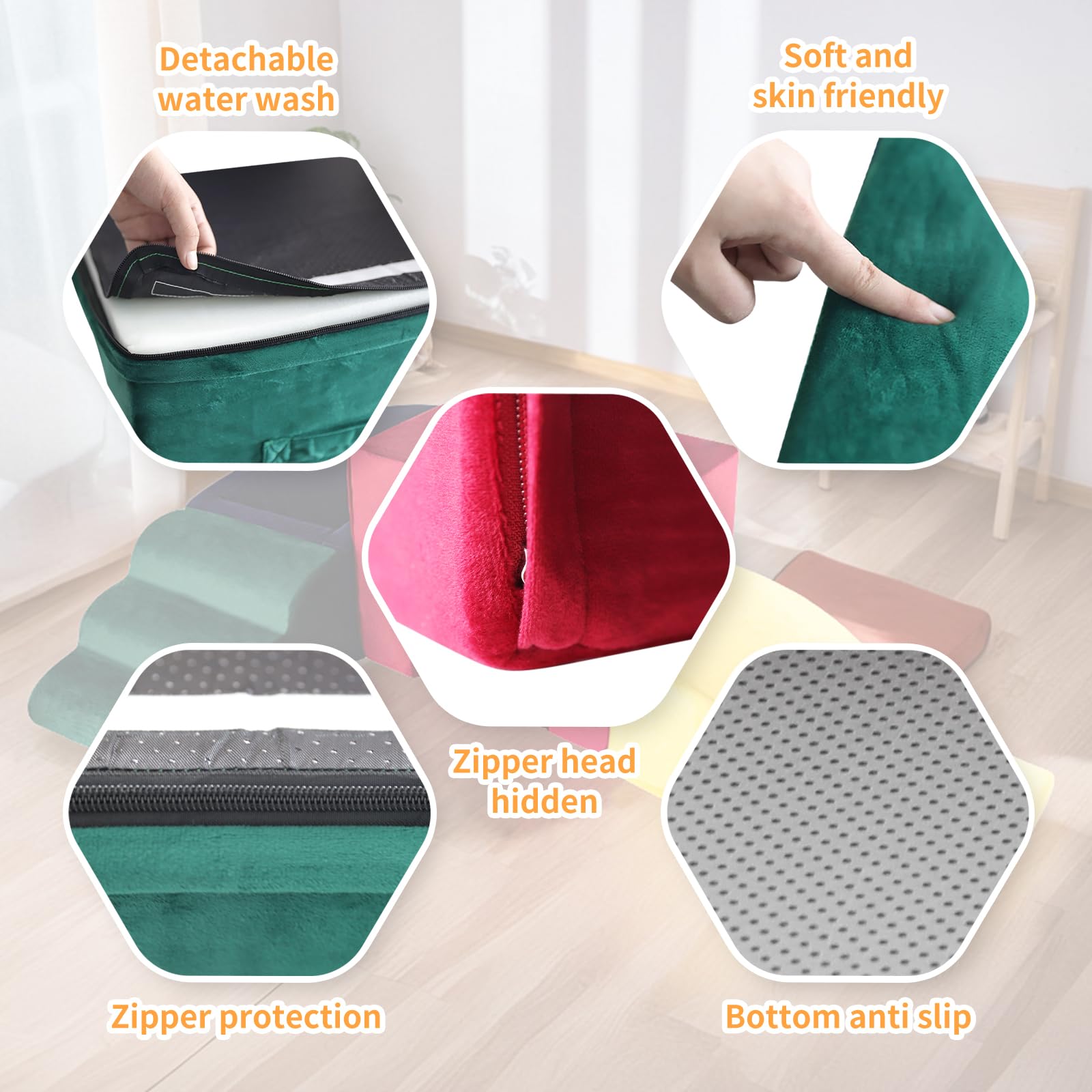 - Made with 28D high-density foam, our soft play equipment offers excellent resilience and support, making it suitable for long-term use. Unlike the cheap, hard foam commonly found on the market, our climbing blocks maintain their shape well and are lightweight, allowing your baby to lift and push them with ease.