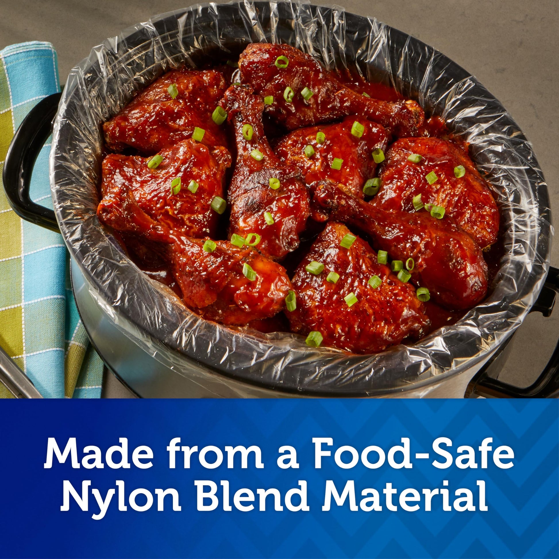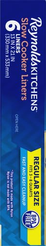Details: Make memorable meals with Reynolds Kitchens Slow Cooker Liners, and save time on cleanup. Grab these slow cooker bags for slow cooking without dealing with stubborn, stuck-on messes. Each slow cooker bag measures 13 x 21 inches to fit 1- to 3-quart round and oval slow cookers, and is made with a BPA-free heat resistant (up to 400 degrees Fahrenheit) nylon-blend construction. Spend more time with your loved ones and less time in the kitchen with these FDA-compliant, food-safe Reynolds Kitchens Slow Cooker Liners.