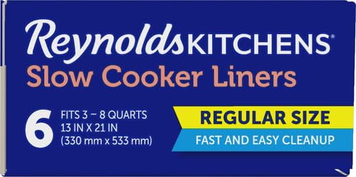 - SLOW COOKER LINERS—This package contains six Reynolds Kitchens Slow Cooker Liners, each measuring 13 x 21 inches to fit 3- to 8-quart round and oval slow cookers