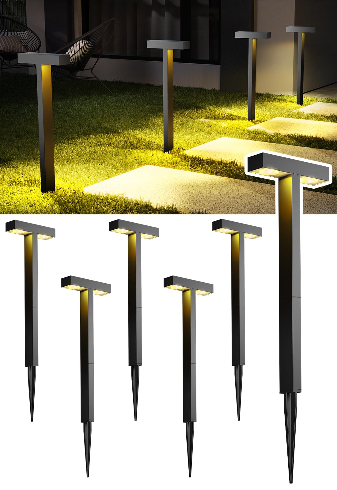 Solar Pathway Lights, 6 Pack Solar Lights Outdoor Waterproof IP65, Modern Solar Path Lights, Outside Lights Solar Powered Landscape Lighting for Yard, Walkway, Driveway, Patio, Warm Light