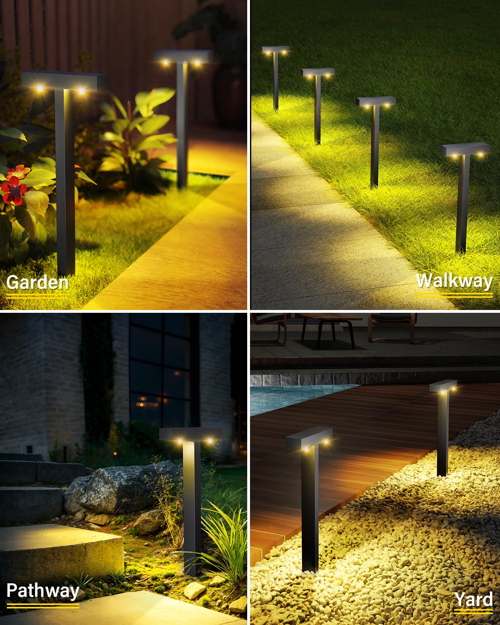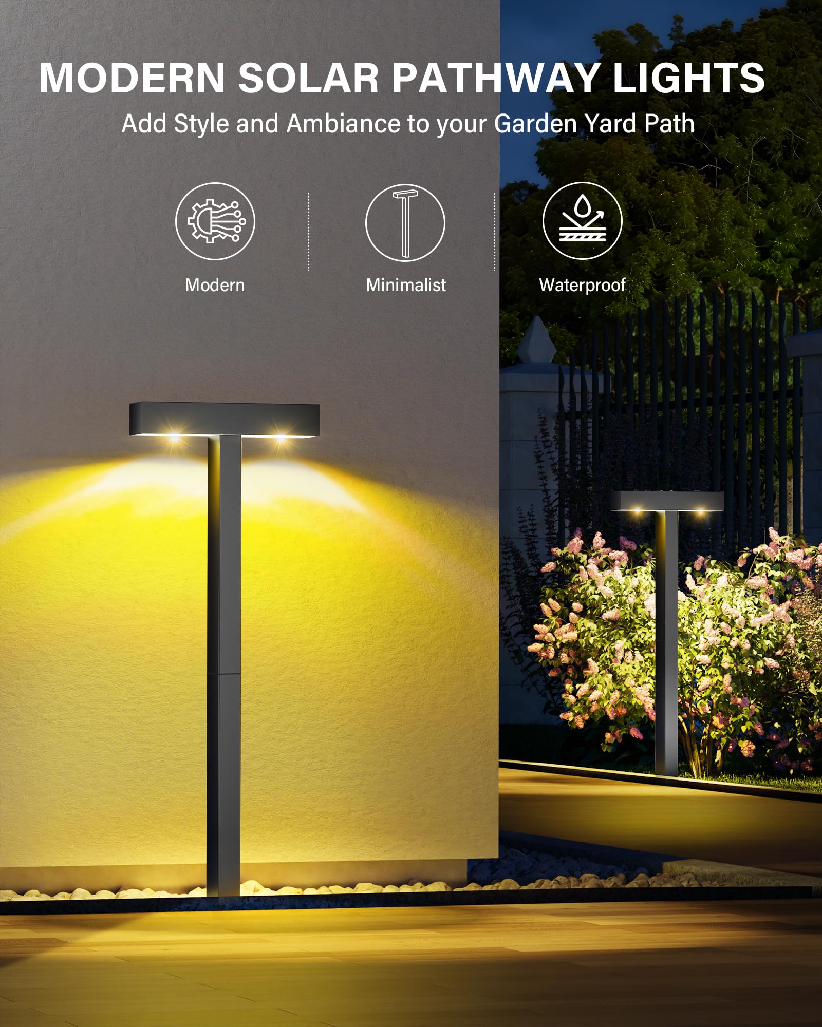 - Modern Solar Lights - The design of ROSHWEY solar pathway lights is incredibly stylish and minimalist. It features a "T" shape, with lights on both sides facing downward, creating bright and stunning patterns on your pathway.