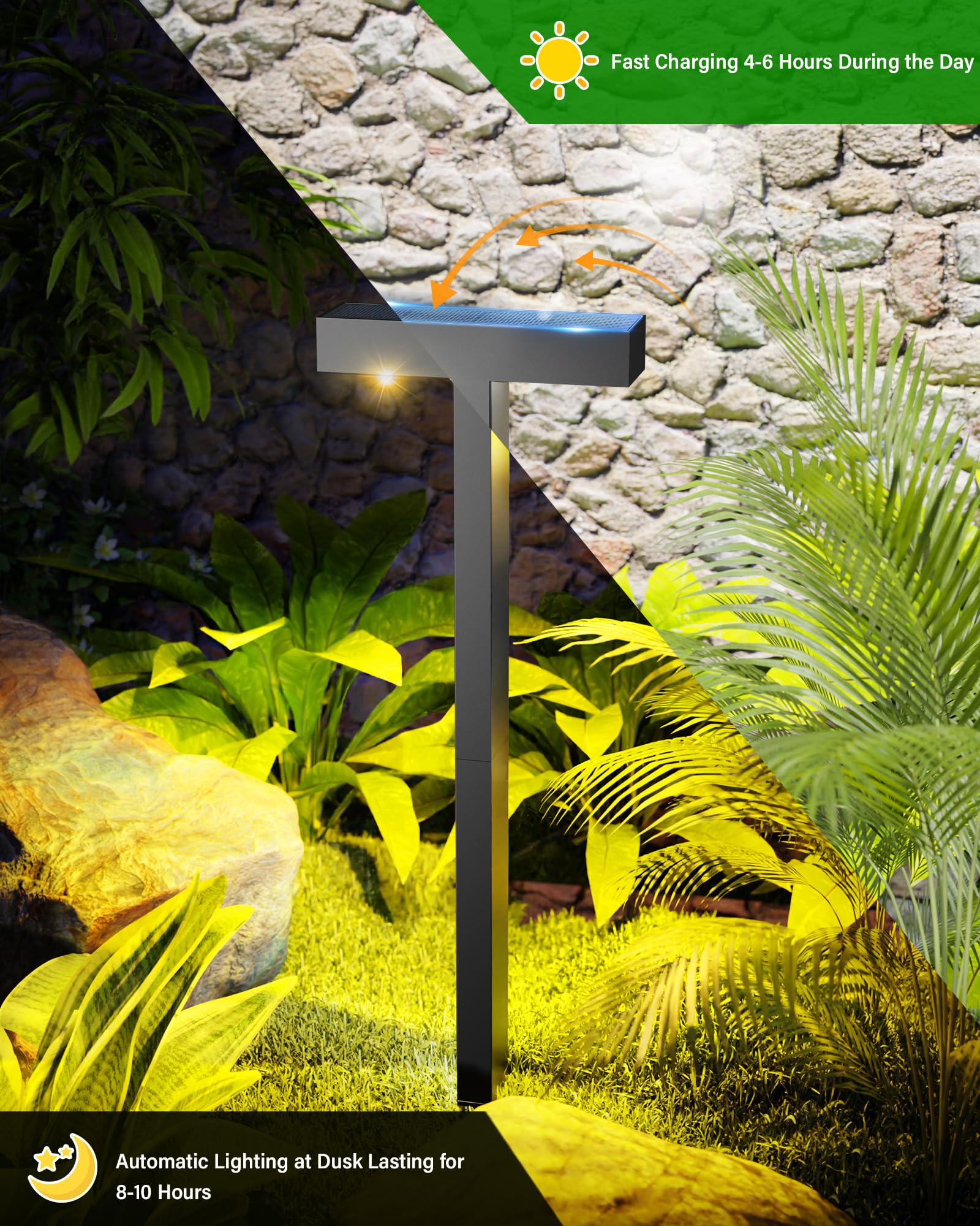 - High Quality Solar Outdoor Lights - Equipped with the latest solar panel, this solar path lights charges 15% faster than other ordinary solar path lights outdoor. It has a built-in 1000mAh battery, which provides 8-10 hours of illumination at night.
