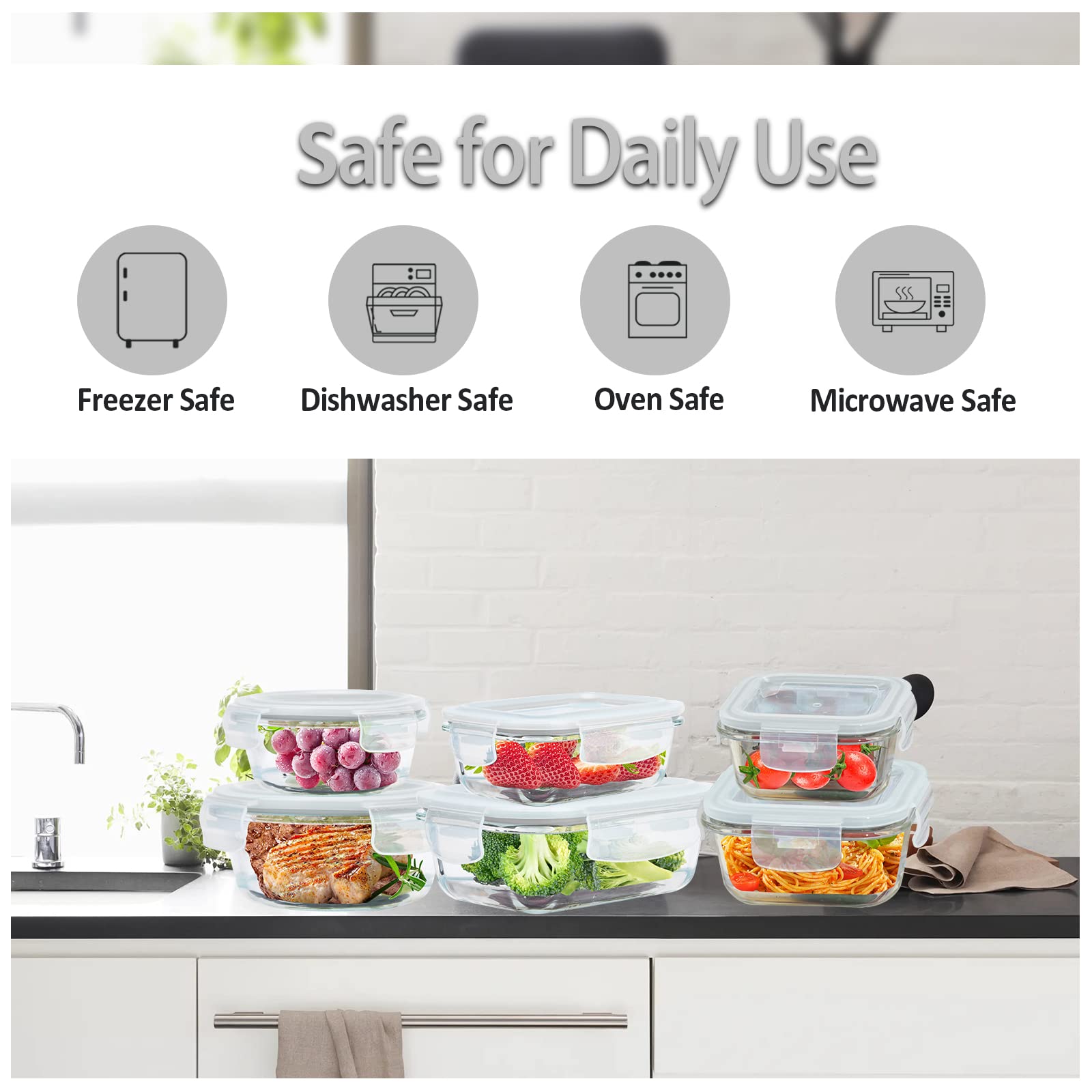 - [FREEZER-TO-OVEN-SAFE GLASS FOOD CONTAINERS] The glass meal prep containers are made of superior borosilicate glass, strong and not easy to broken. The glass lunch containers can withstand -20℃ to 400℃. Microwave/oven/dishwasher safe (not the lid) and freezer safe. Stackable design is great for food storage.