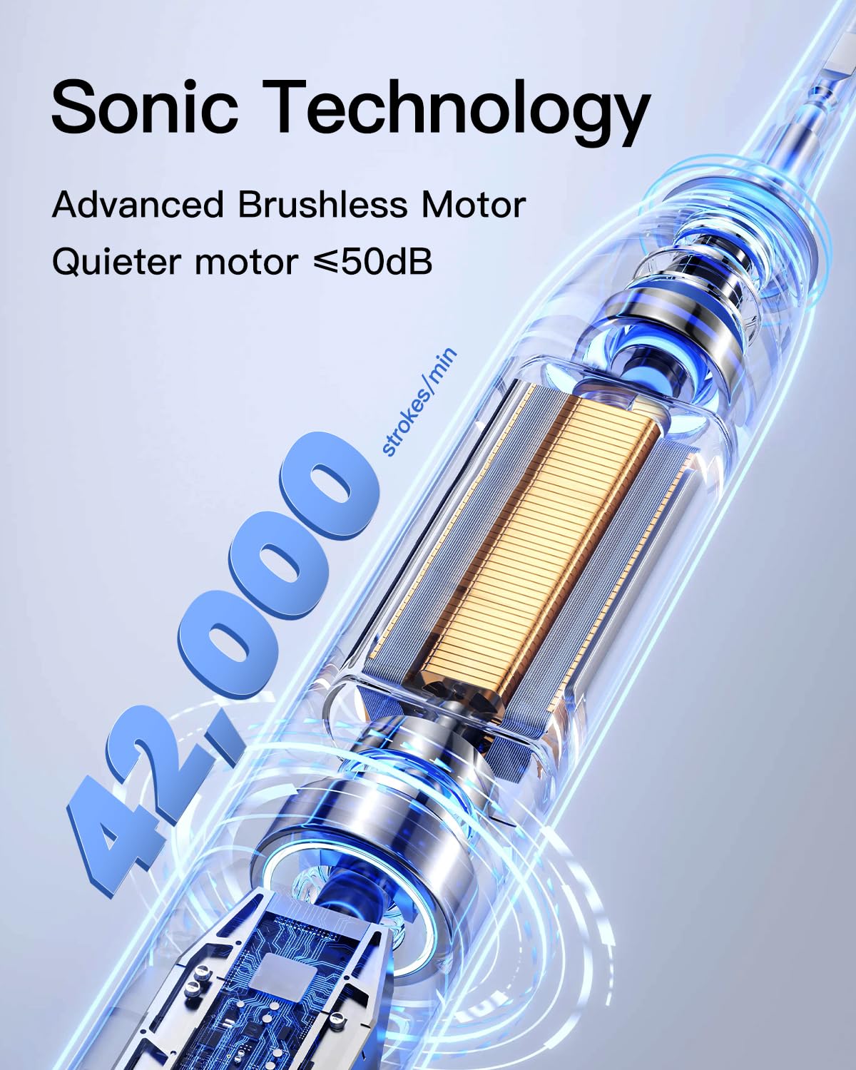 - All-New Upgraded Powerful Sonic Cleaning - Rtauys electric toothbrush features cutting-edge technology with up to 42,000 VPM high-frequency sonic vibrations, suitable for adults and kids aged 12 and above. It effectively cleans along the gum line, removing up to 125% more plaque and whitening teeth. It efficiently breaks down plaque and food residue. The soft, flexible bristles conform to the shape of each tooth surface, providing 4 times more surface contact and removing up to 10 times more plaque from hard-to-reach areas for deep cleaning