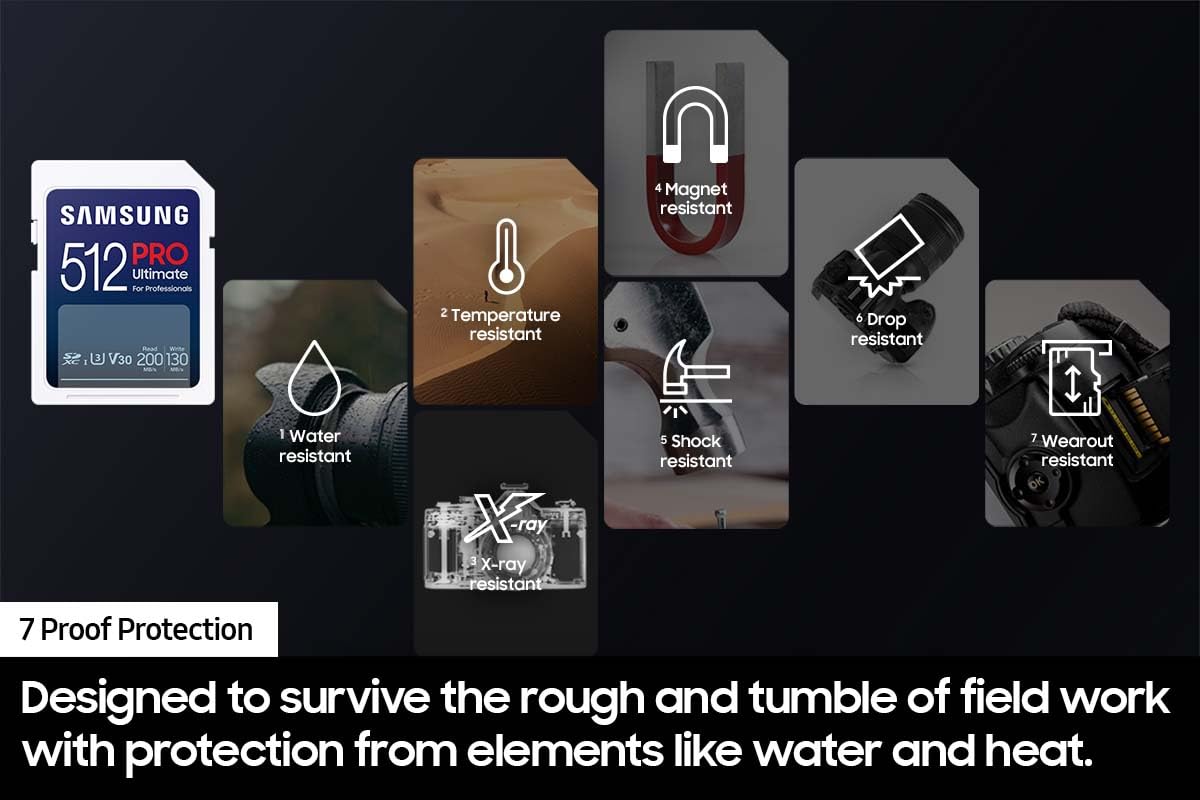 - PROTECTED FOR PEACE OF MIND: The Samsung PRO Ultimate has a comprehensive 7-proof protection from elements like water and extreme temperatures5-12 plus a long-lasting 10-year limited warranty to help you make the most of it