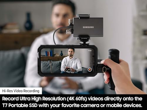 - HI RESOLUTION VIDEO RECORDING: Record Ultra High Resolution (4K 60fs) videos directly onto the T7 Portable SSD with your favorite camera or mobile devices; Supports iPhone 15 Pro Res 4K at 60fps video and more³