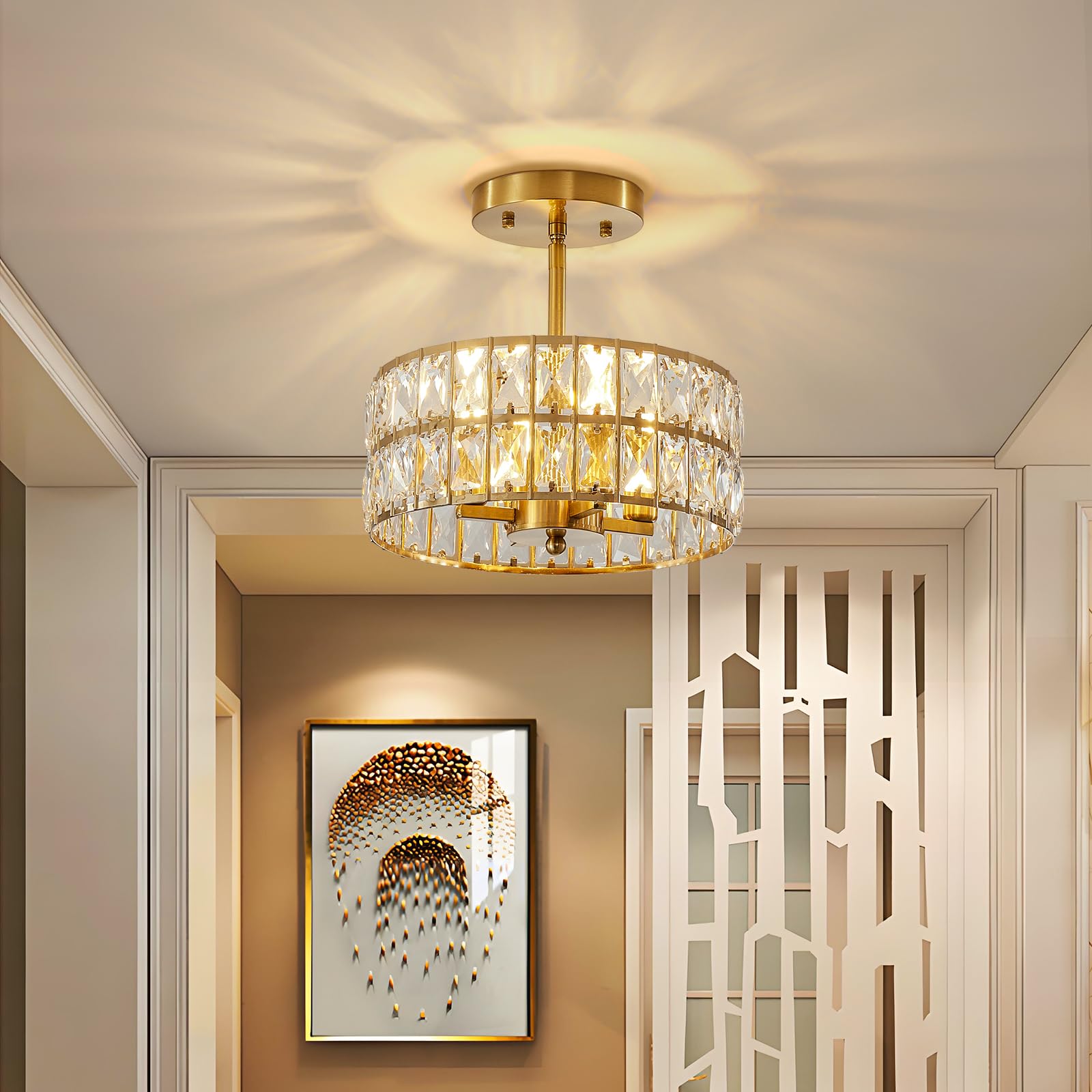 - Warm & Inviting Ambiance – Compatible with E12 bulbs (not included), this brass crystal light fixture creates a soft, warm glow, perfect for living rooms, foyers, or master bedrooms.