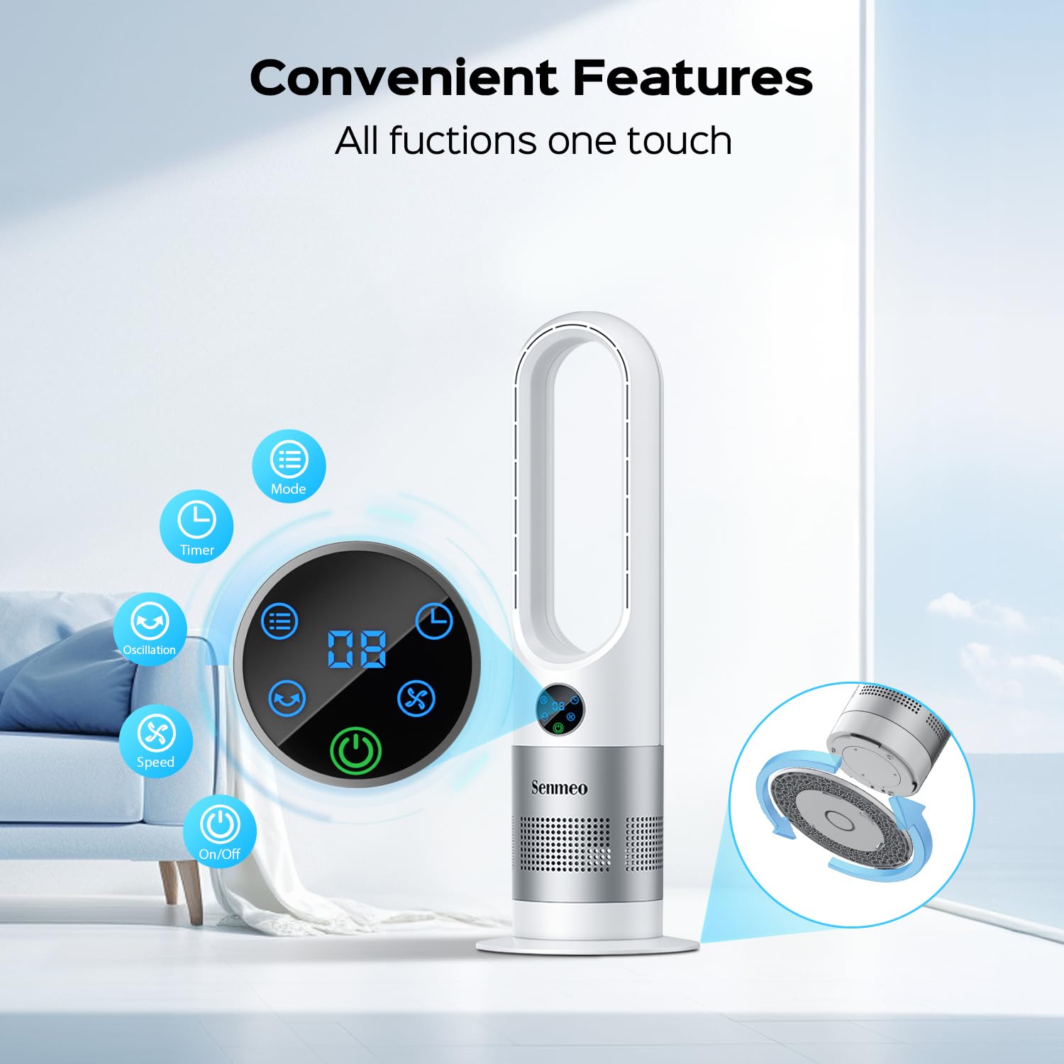 - ๐๐น๐ฎ๐ฑ๐ฒ๐น๐ฒ๐๐ ๐ณ๐ผ๐ฟ ๐ ๐ฎ๐ ๐ถ๐บ๐๐บ ๐ฆ๐ฎ๐ณ๐ฒ๐๐ : Senmeo tower fan features a bladeless design concept that mimics the effect of natural wind, providing a silky soft breeze. Without rotating blades, it eliminates the risk of injuries, making it ideal for families with small children or pets. The bladeless fan is also easy to clean, effectively saving you time on cleaning
