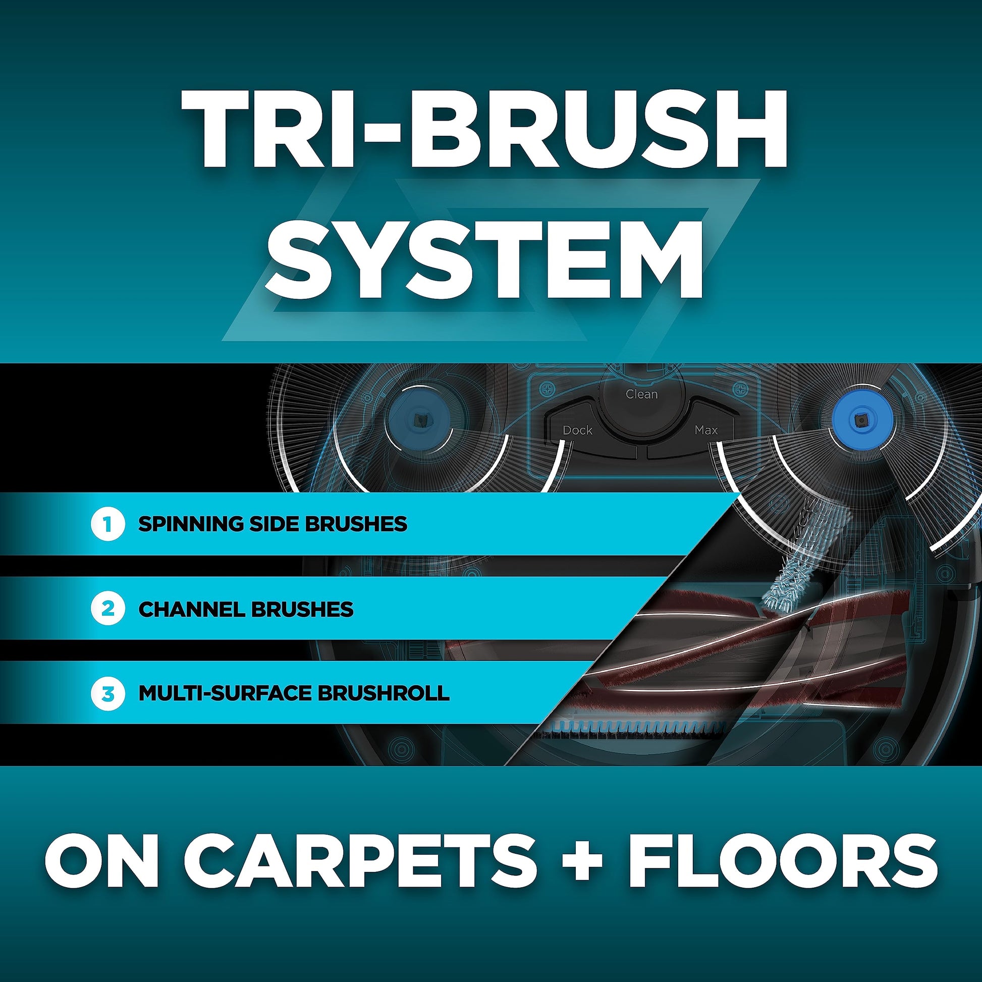 - THREE BRUSH TYPES. ONE POWERFUL CLEAN: Tri-Brush System combines side brushes, channel brushes, and a multi-surface brushroll to handle debris on all surfaces..Form Factor: Robotic