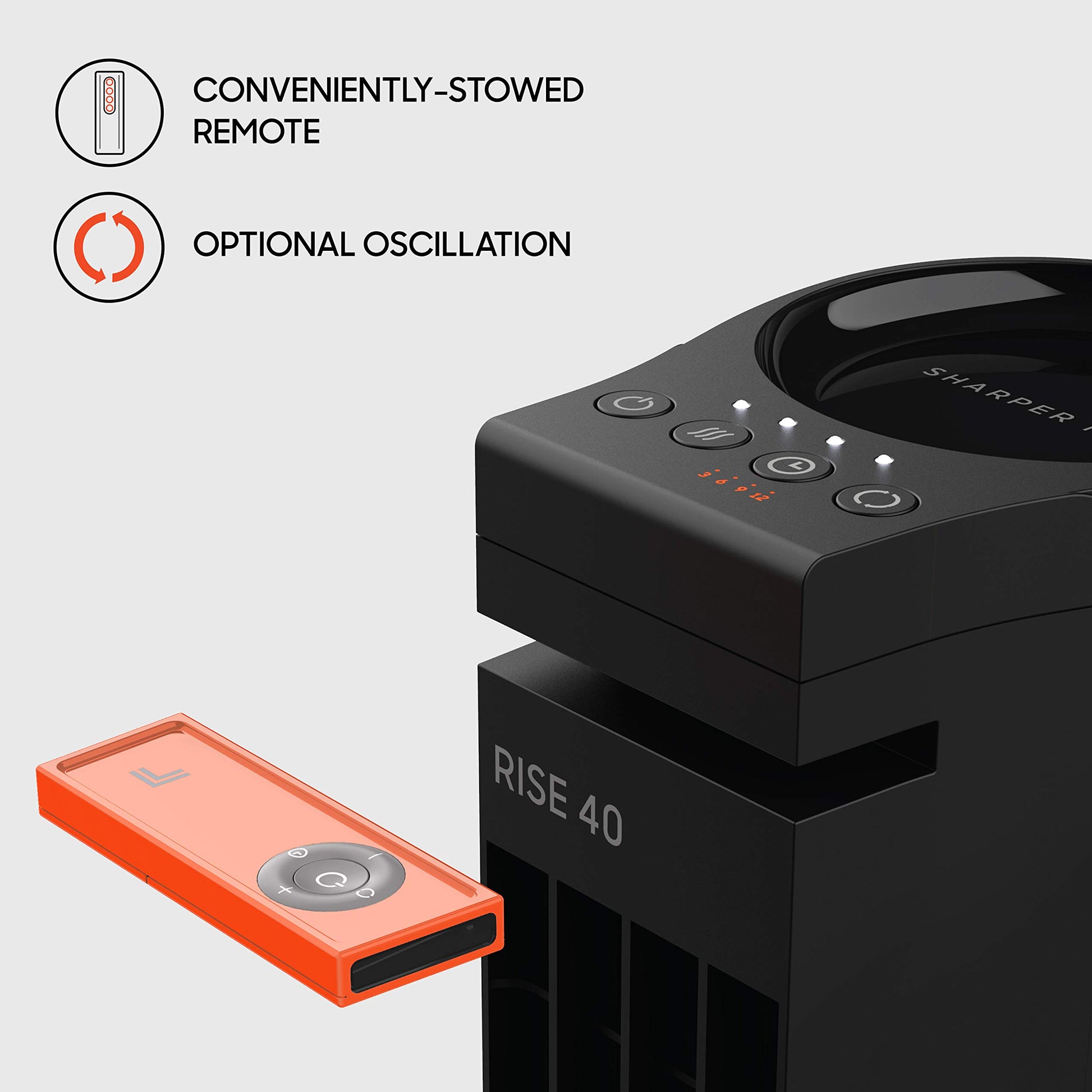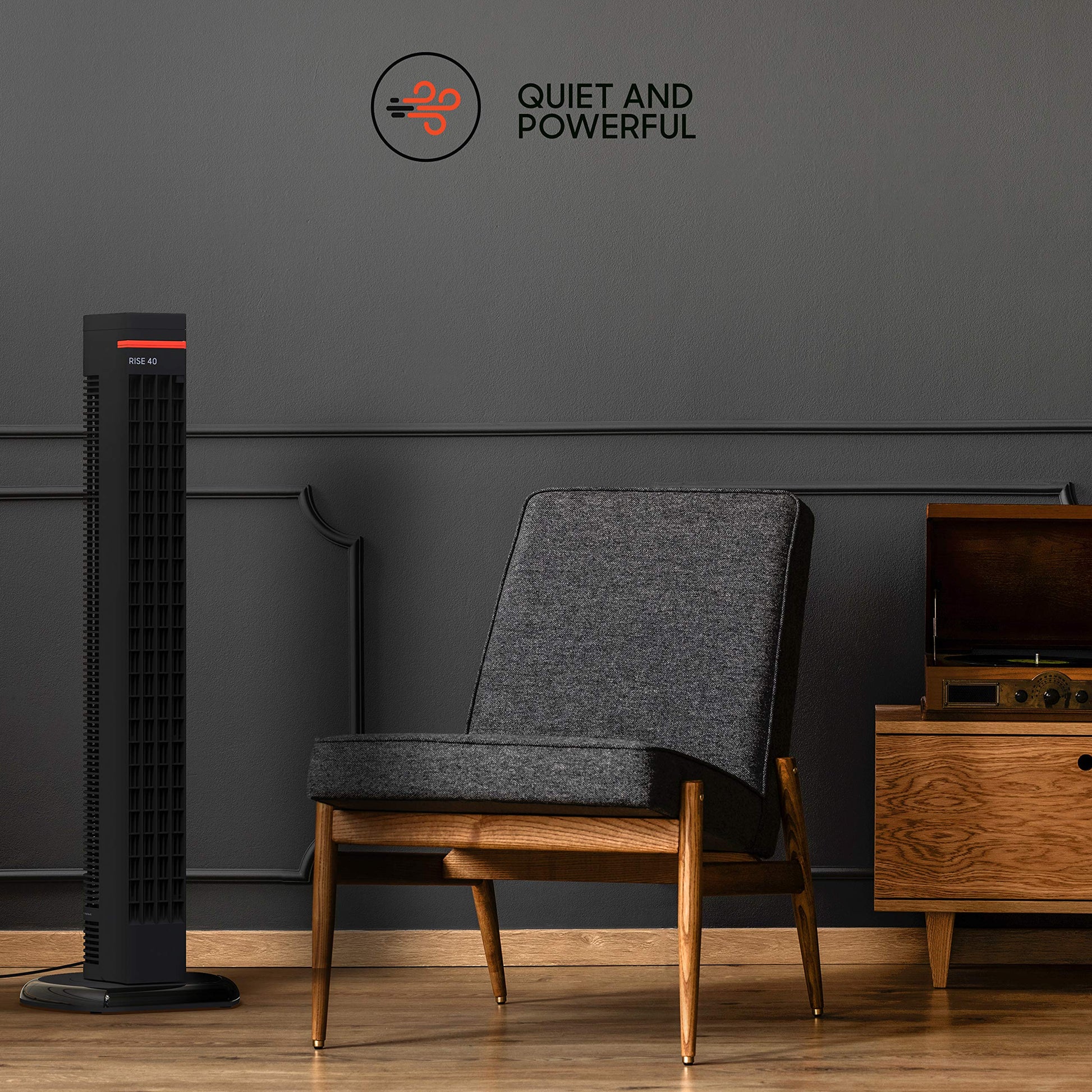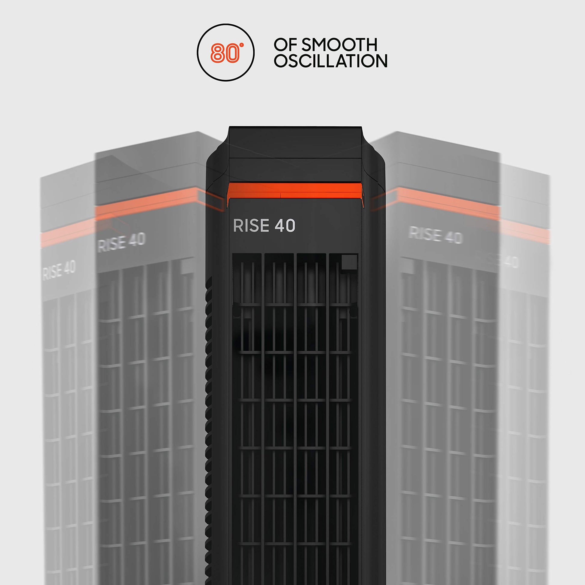 - SLEEK DESIGN: RISE 40 is perfect for looking cool and keeping you cool. The integrated carrying handle and magnetic remote control storage add to the sleek, innovative design.