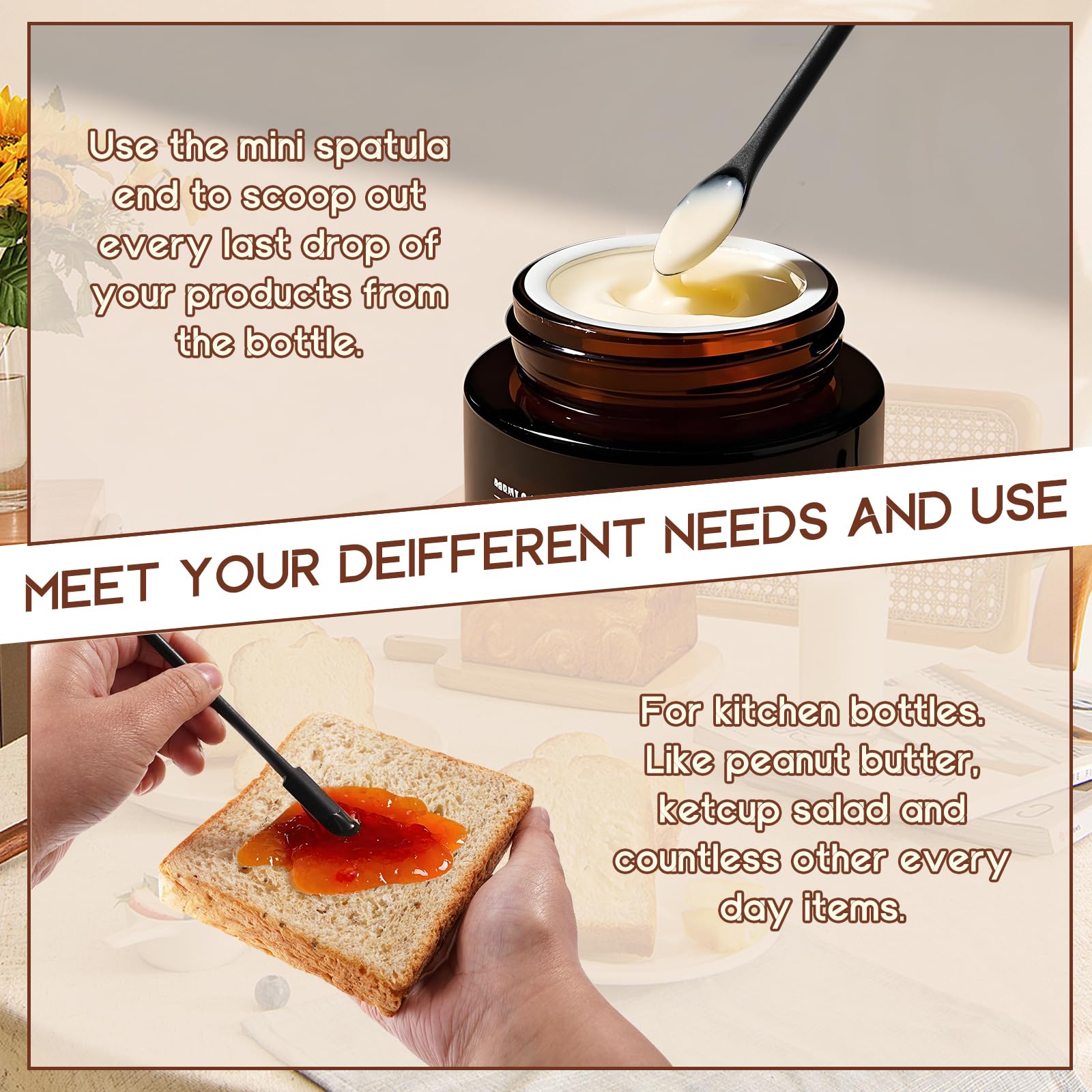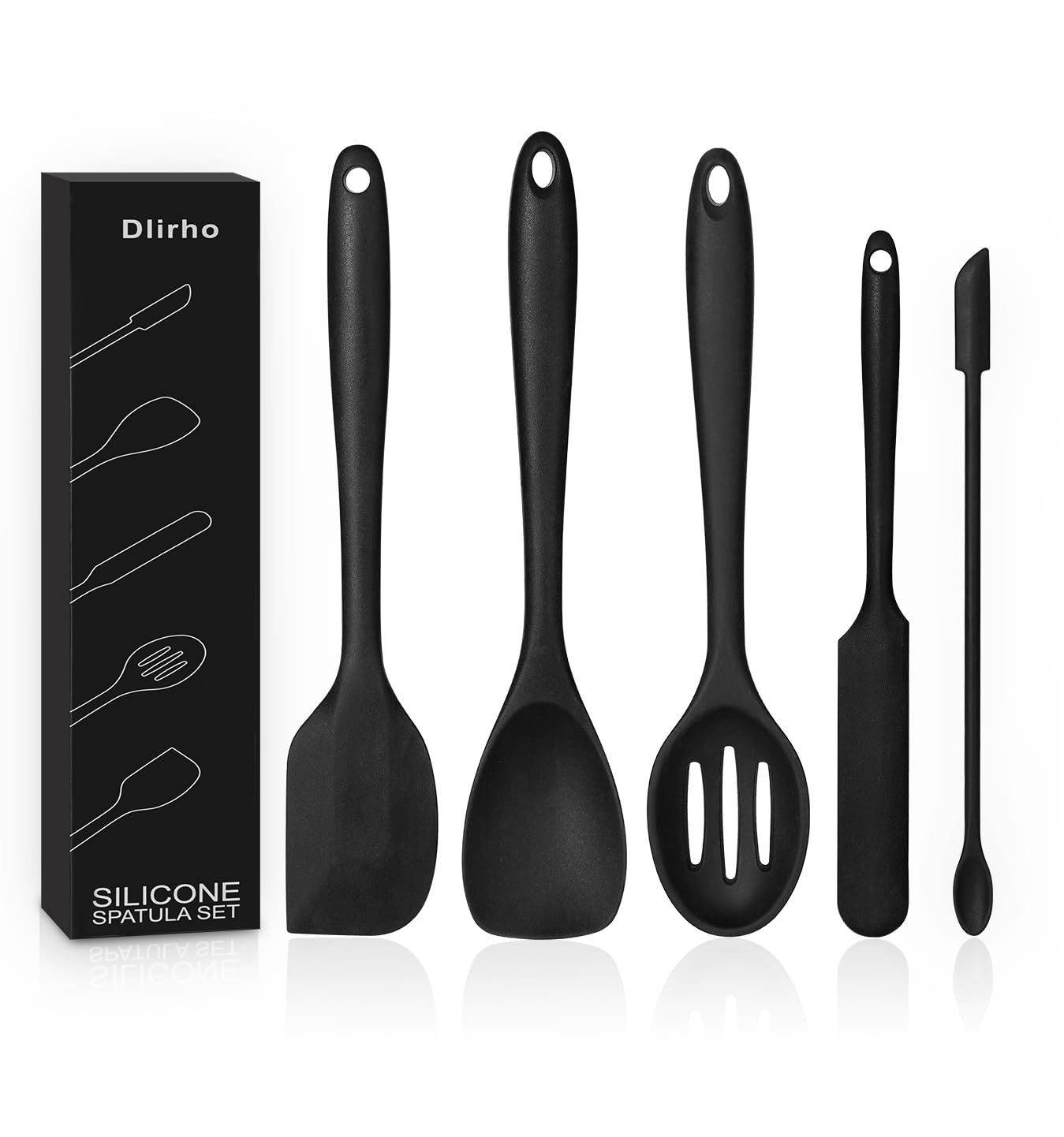 - Versatile Spatula 5-Piece: Silicone spatulas heat resistant: 1 x large spatula; 1 x spoon spatula; 1 x slotted spatula; 1 x jar spatula; 1 x mini spatula.