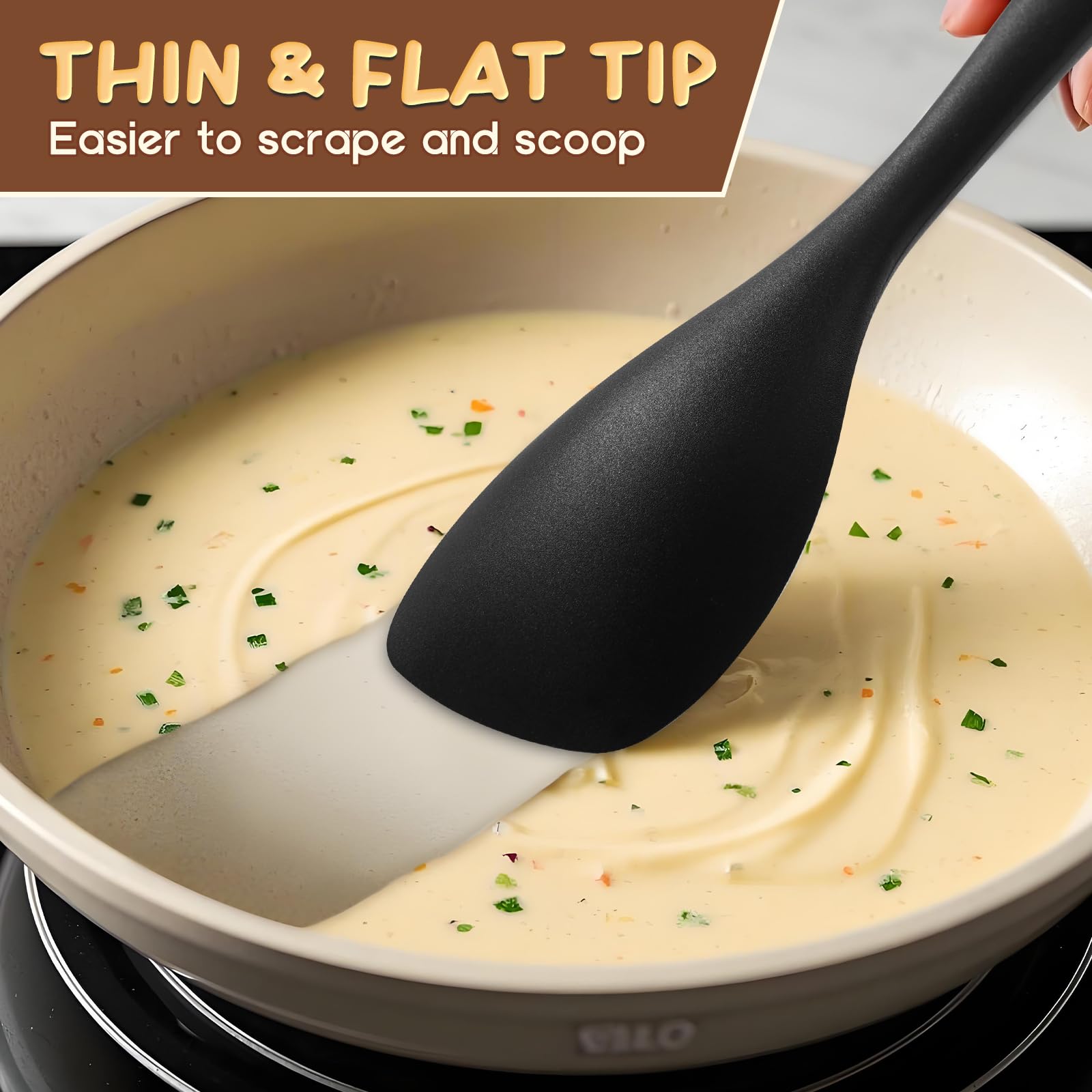 - Seamless One Piece Design: One-Piece Design makes cooking spatulas impossible to hide the food. Sturdy and durable,soft Handle and noiseless, thin and flexible edge, Perfect for baking ,cooking and mixing etc.