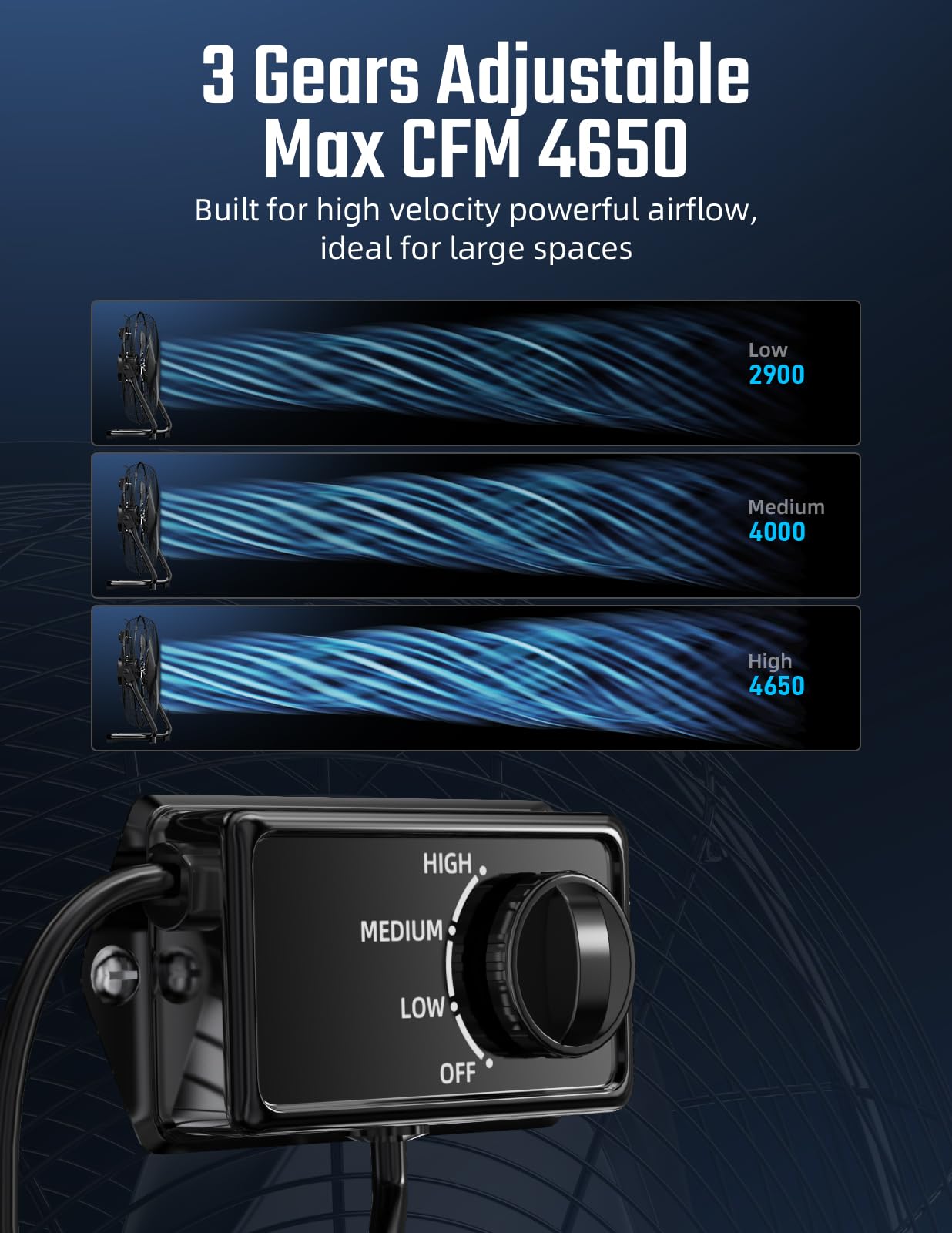- This Super wall fan has create an air velocity of 4, 650 CFM.
