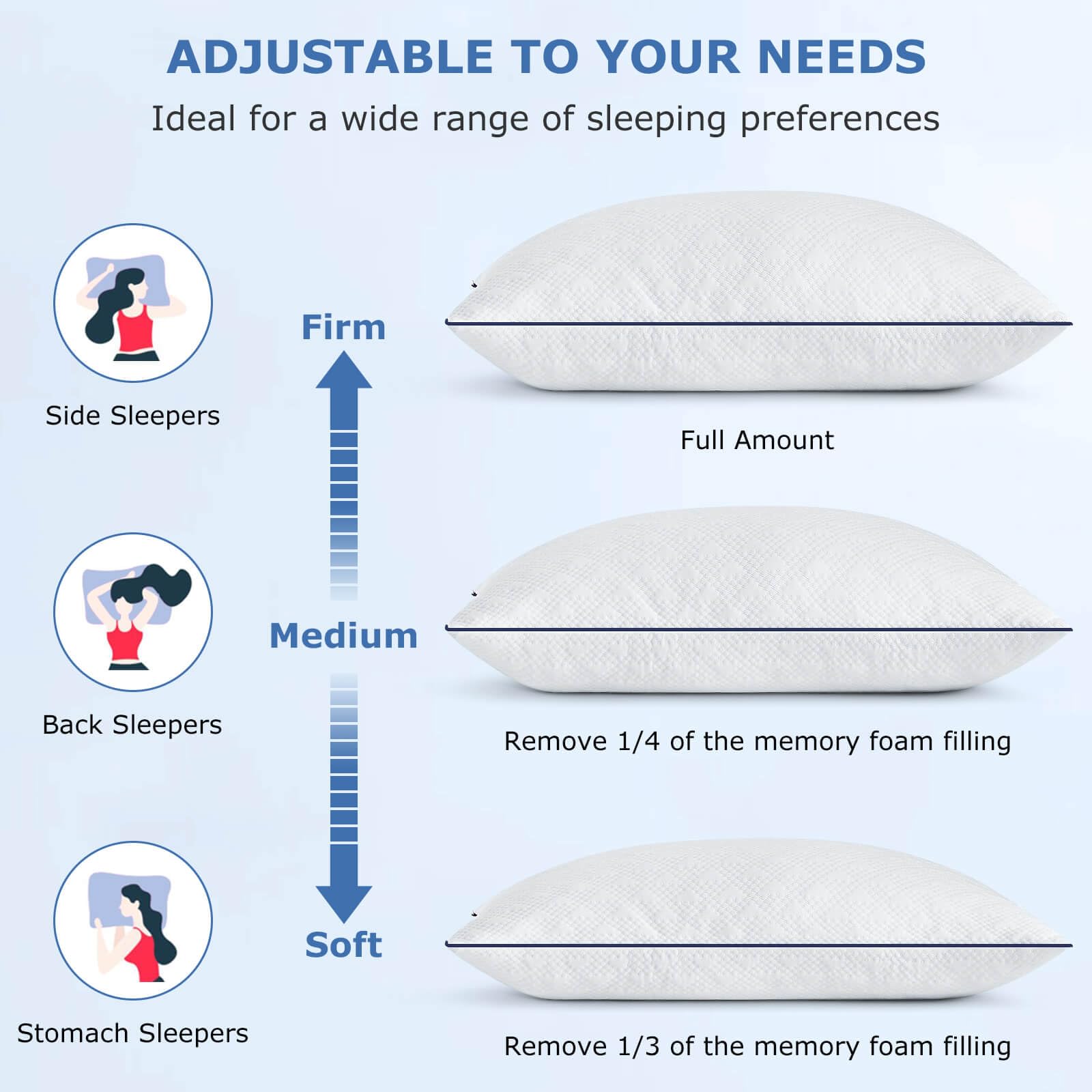 - Customizable Luxury Comfort: Tailored for picky sleepers, Slybear’s adjustable standard pillows offer the flexibility to adjust the loft and firmness to your liking by adding or removing fill. Once you achieve the perfect height, sink into luxurious comfort for uninterrupted sleep all night long