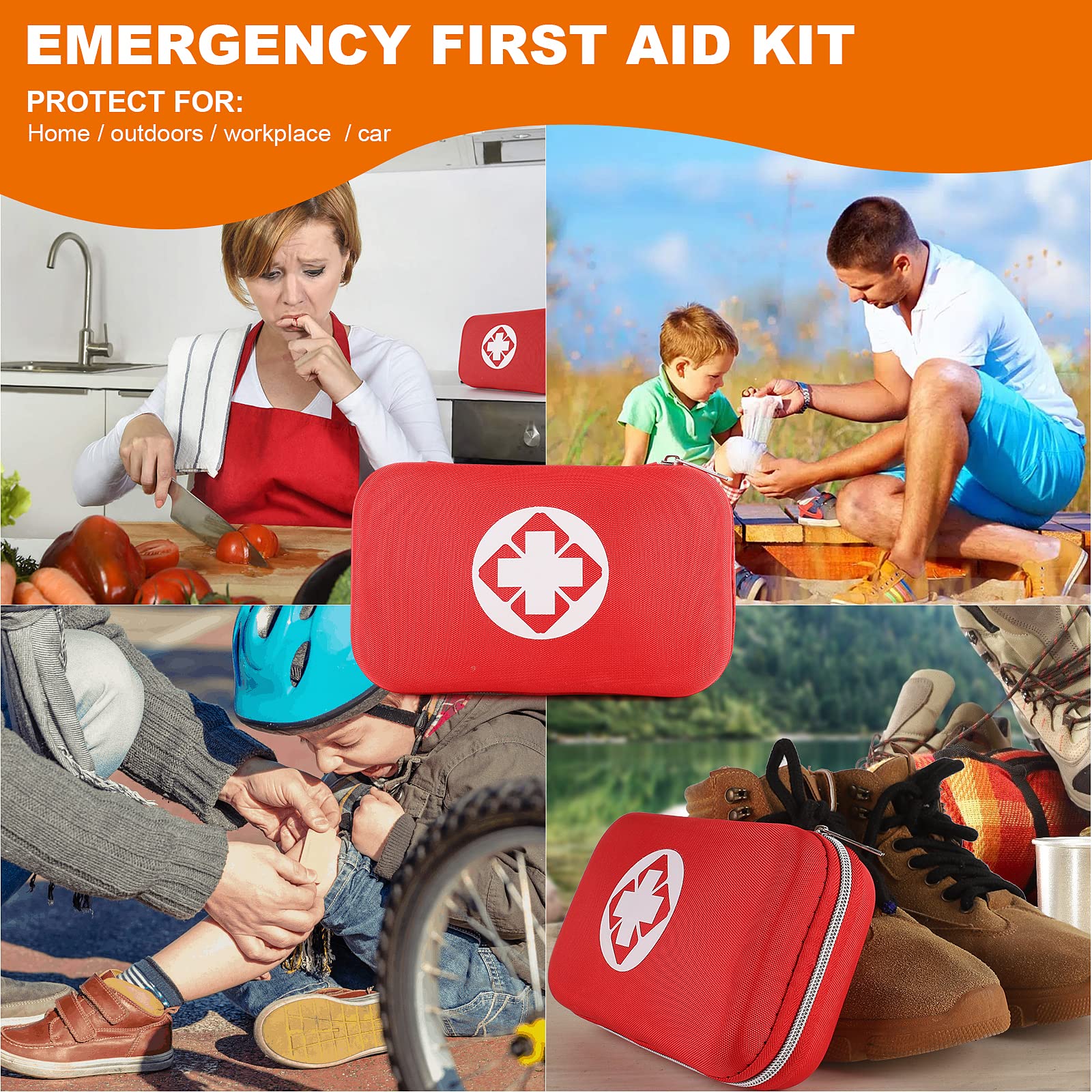 - 【Compact Mini First Aid Kit】 All the emergency medical supplies are neatly arranged in a red waterproof box measuring 7.5 x 4.5 x 2.8 inches. Small and lightweight, easy to carry, and can be placed in cars, backpack, drawer, etc. It’s a perfect home and travel first aid kit. Thoughtful gifts for women mum who are always busy in the kitchen.