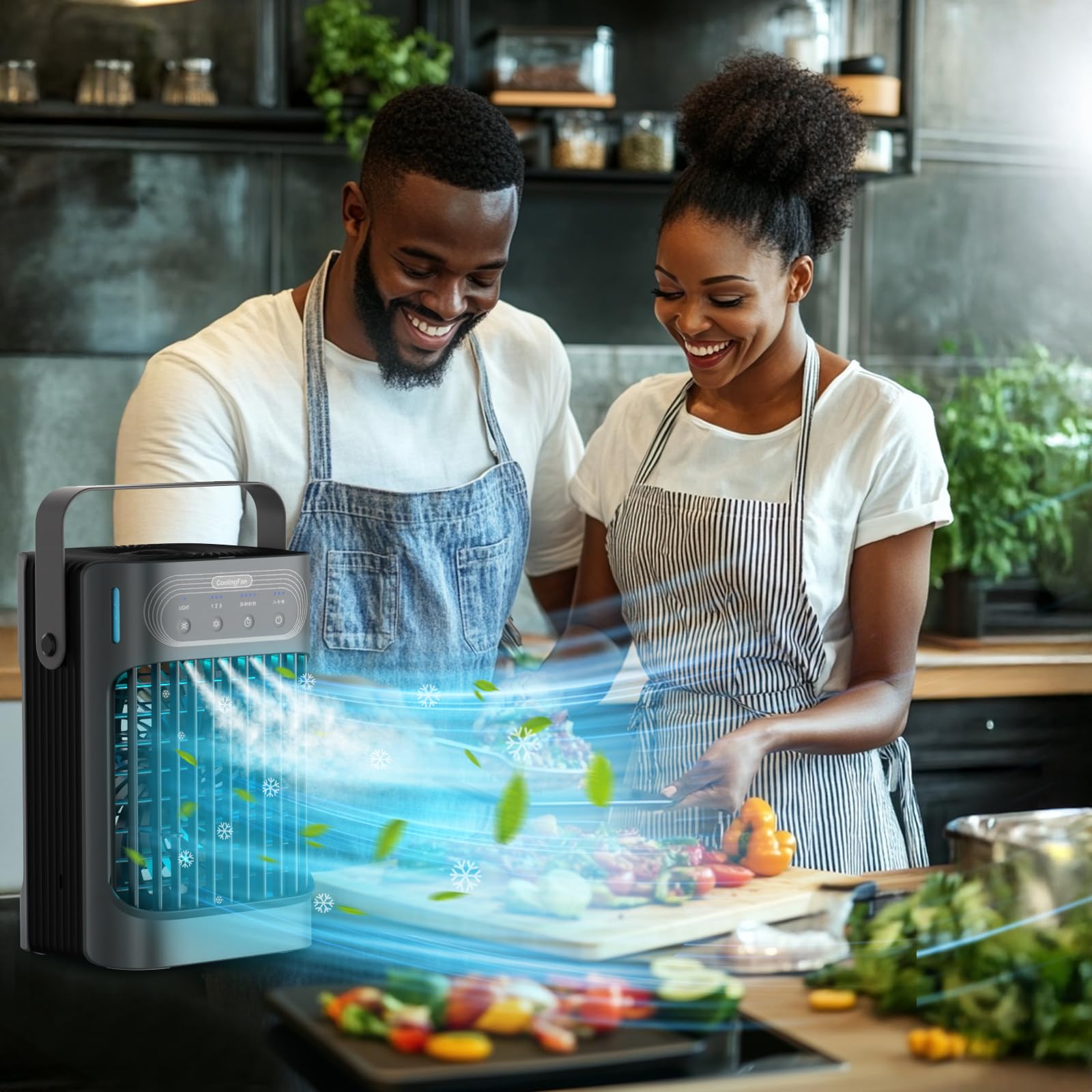 - {1S Cooling, High -Efficiency Refrigeration Atomization}LEAEYFE upgraded version of the portable air conditioner is equipped with 2000r/h high-speed motor plus dual ultrasonic atomizers, which can reduce the surrounding temperature to 86F-68F in just 1 seconds to provide you with strong, cool, fresh air flow instead of being caught by heat waves.