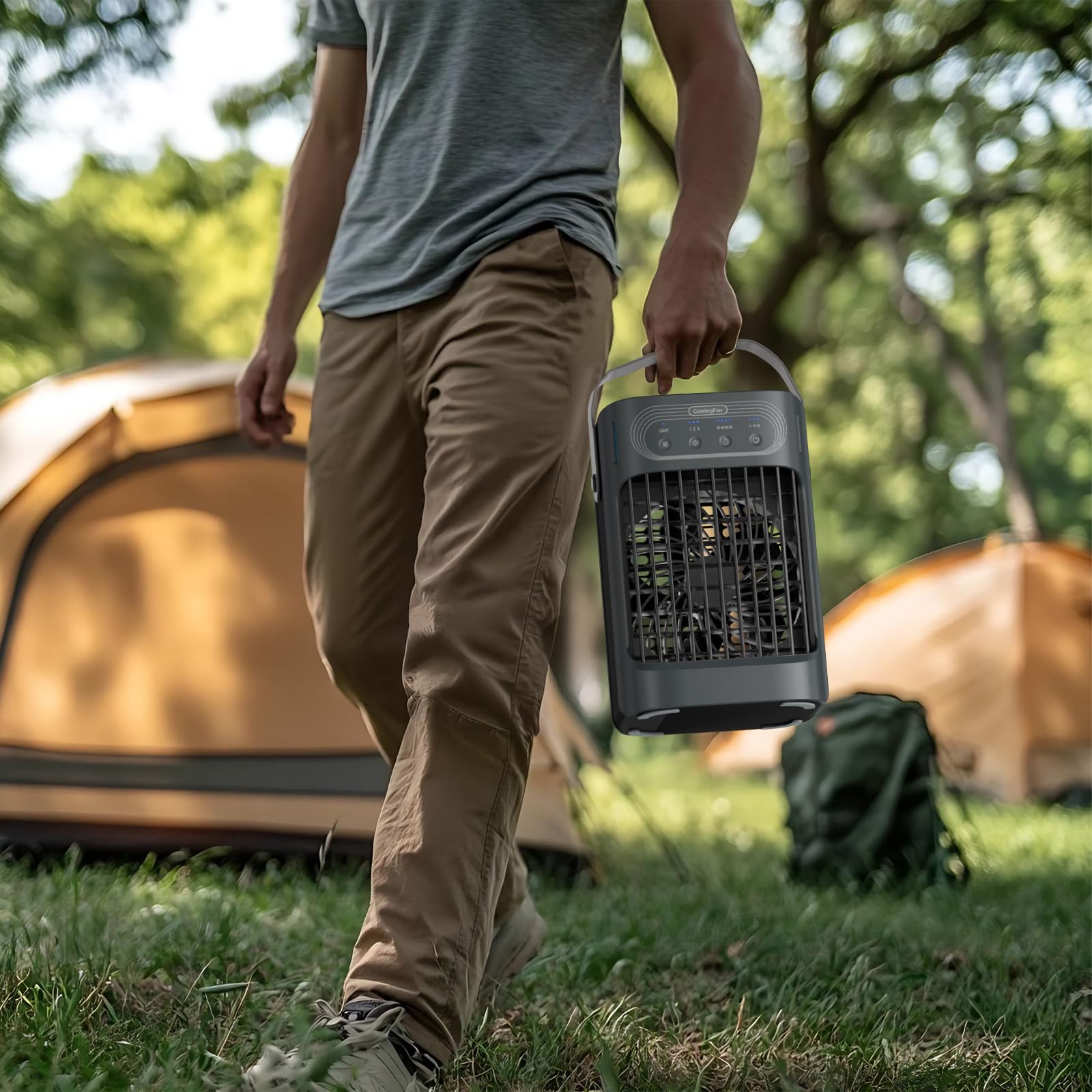 - {Easy to Move & Wide Usage}Air cooler is portable due to Compact size and leather handle,comes with a 1.5M cord and USB port, compatible with power banks, laptops, adapters and car chargers (5V 2A adapter recommended, not included).Good ideal for the office, bedroom, living room, kitchen,camping.