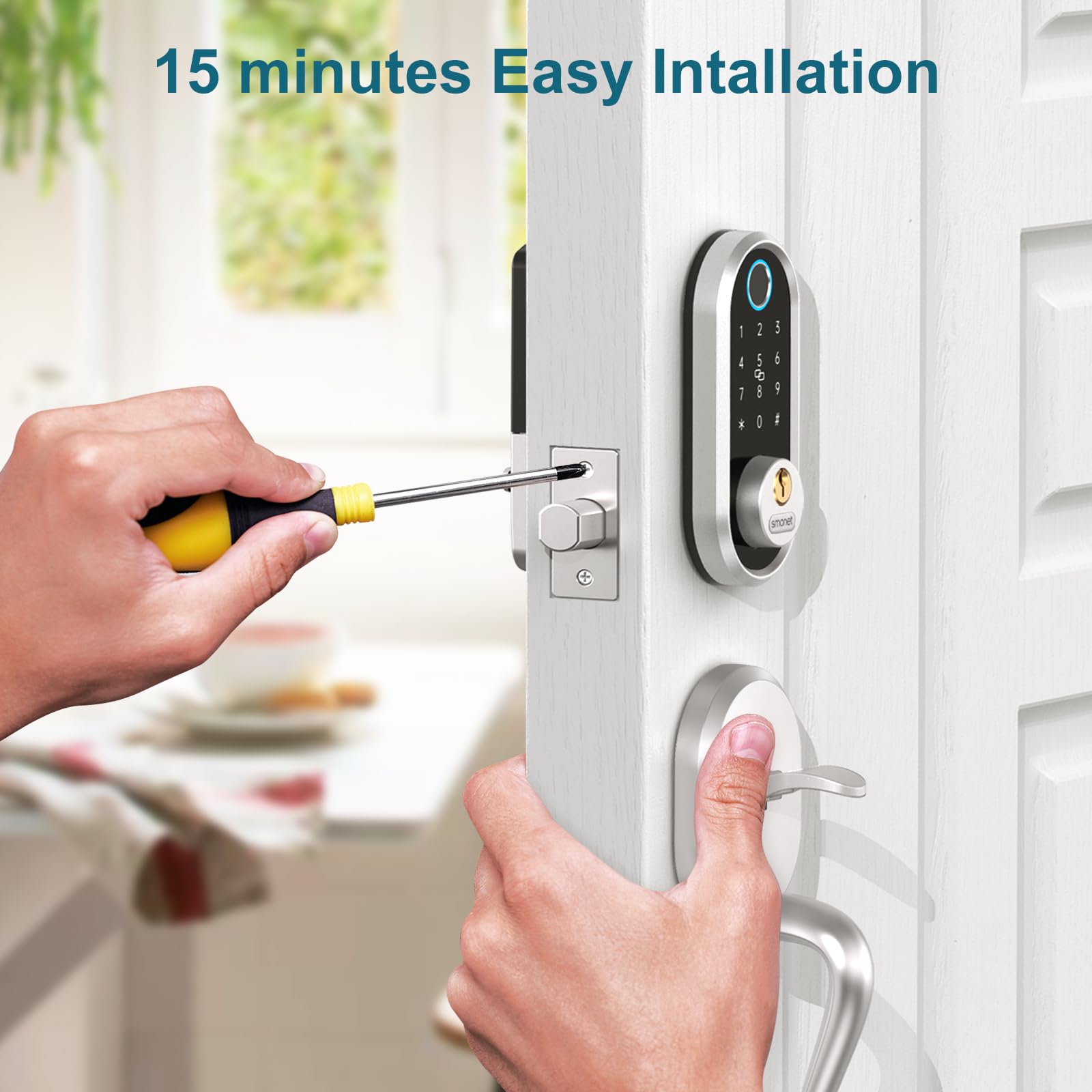 - 7 Ways to Unlock: Access your door via Fingerprint, Passcode, Fob, Mechanical Key, TTLock App, or voice control with Alexa and Google Home for ultimate convenience.