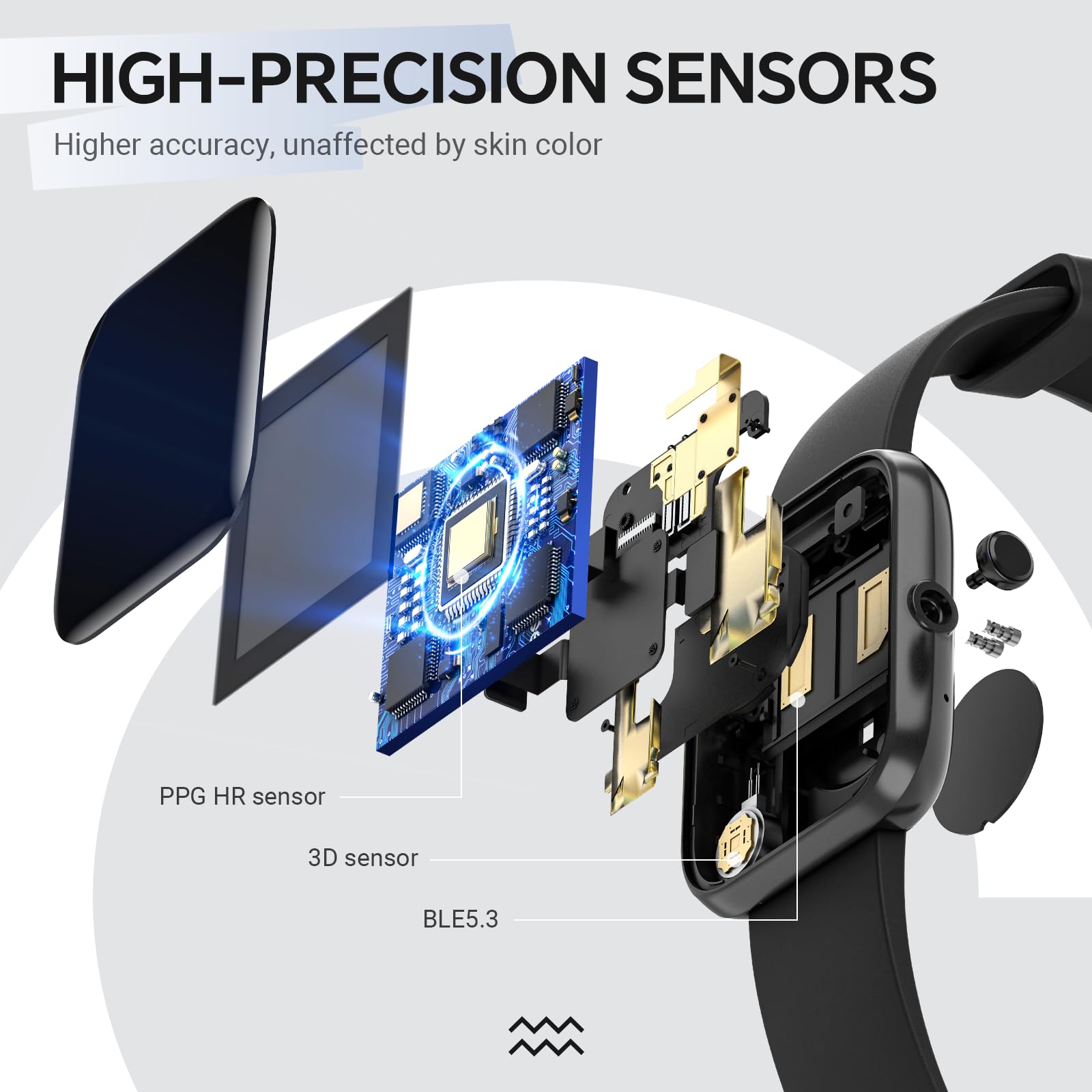 - ✅【State-of-the-Art Sensing Technology】Benefit from accurate monitoring of health and fitness thanks to our smart watch, equipped with the latest heart rate chips and 3D sensors, alongside sophisticated algorithms. This synergy provides in-depth analysis with remarkable accuracy, guaranteeing reliable measurements across various skin tones.