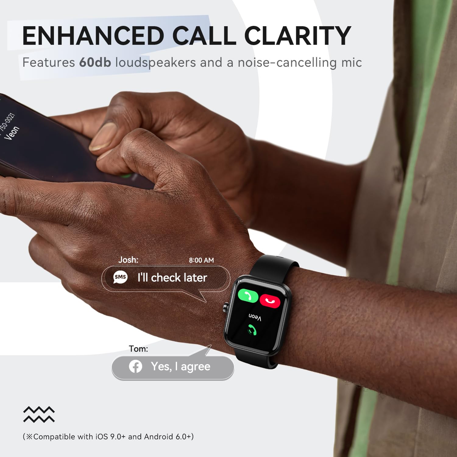 - ✅【Unmatched Bluetooth Call Quality】Equipped with Bluetooth 5.3 for unwavering connection. Our smart watch features 60dB loudspeakers and microphones with noise cancellation, delivering crystal-clear voice calls. Get emails/texts/notifications directly on your watch, ensuring you stay informed and connected.