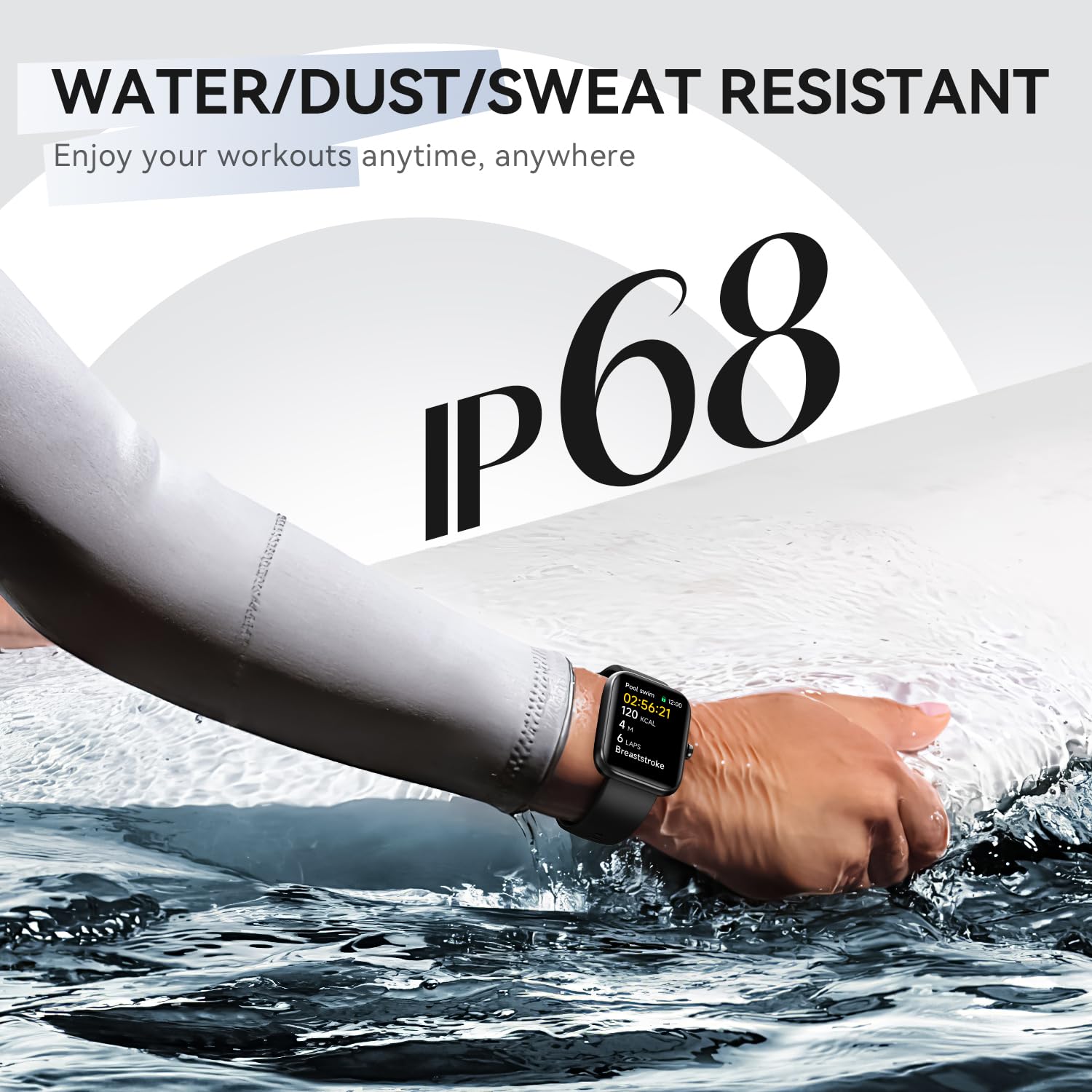 - ✅【Resistance to Water, Dust, and Sweat】Pursue your fitness endeavors anywhere, anytime. With an IP68 rating, our smart watch withstands exposure to dust, water, and perspiration. Whether you're in the gym or out in the rain, your tracking stays precise and uninterrupted. Compatible with iOS 9.0+ and Android 6.0+.