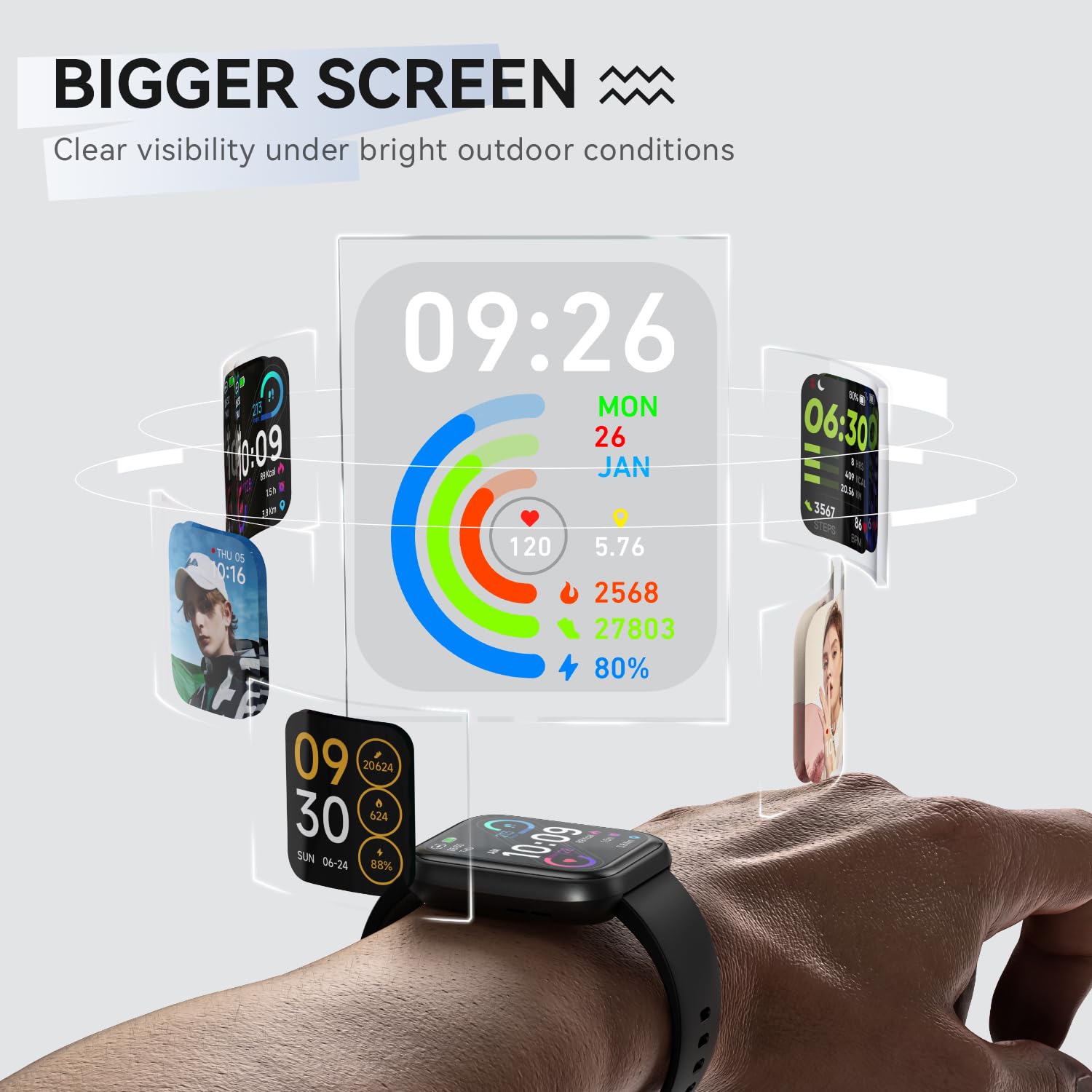 - ✅【Broad 1.83'' Screen】Immerse in the sharp details on the 1.83'' expansive screen of our smart watch, featuring a brilliant resolution. Crafted for legibility even under bright sunlight, it ensures that your fitness information and notifications are easily viewable at a moment’s glance.