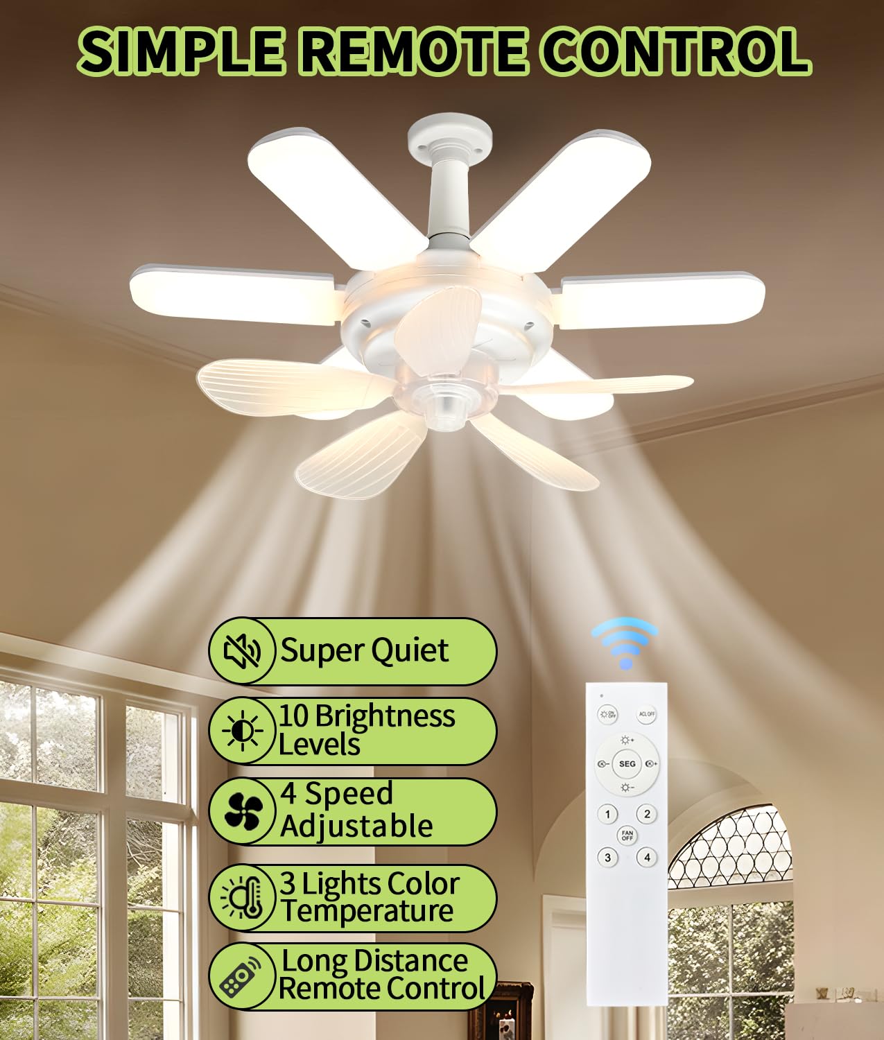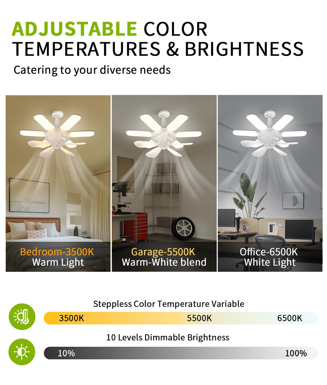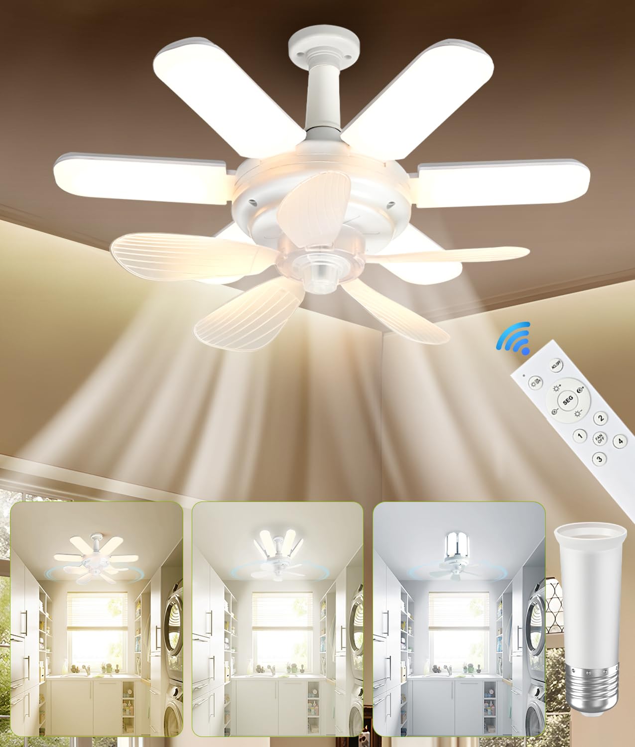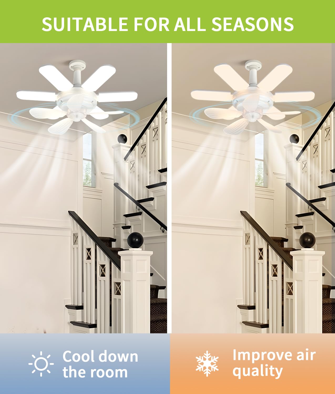 Socket Fan Light, Ceiling Fans with Lights and Remote - Dimmable LED Ceiling Fans with Lights,360°Super Brighter Foldable Socket Fan,3 Colors 3500K-6500K,E27 Screw in Ceiling Fan for Bedroom Garage