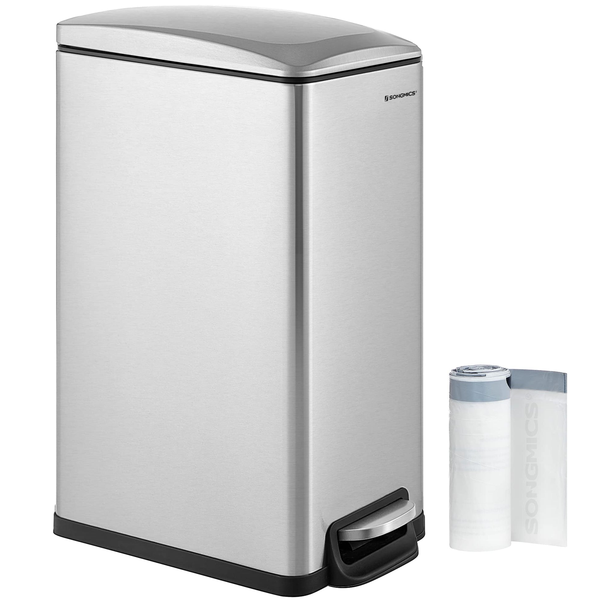 SONGMICS Slim Trash Can, 12.7 Gallon Garbage Can for Narrow Spaces with Soft-Close Lid, Inner Bucket, and Step-on Pedal, Stainless Steel, 15 Trash Bags Included, Silver ULTB510E48