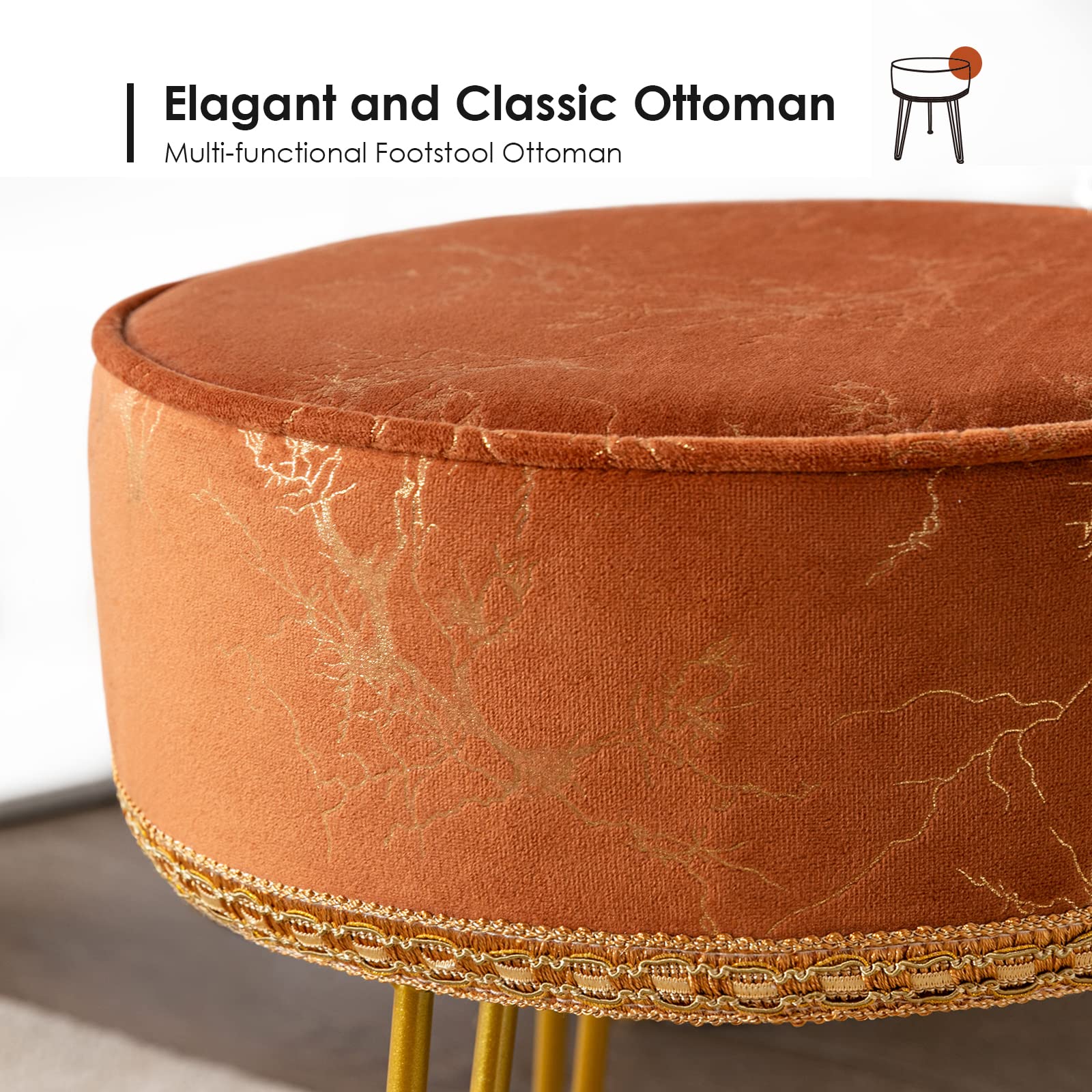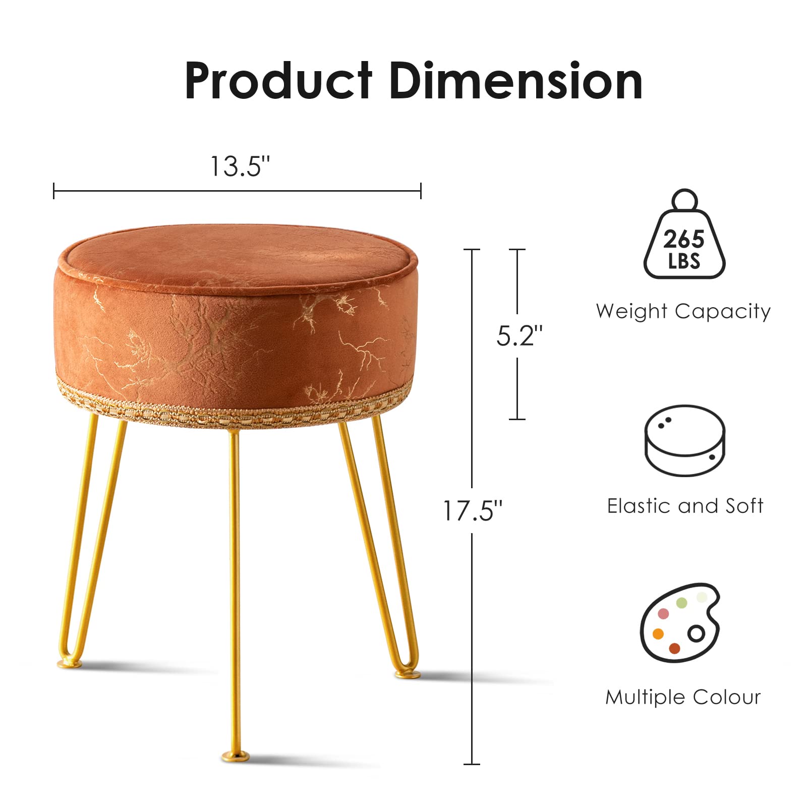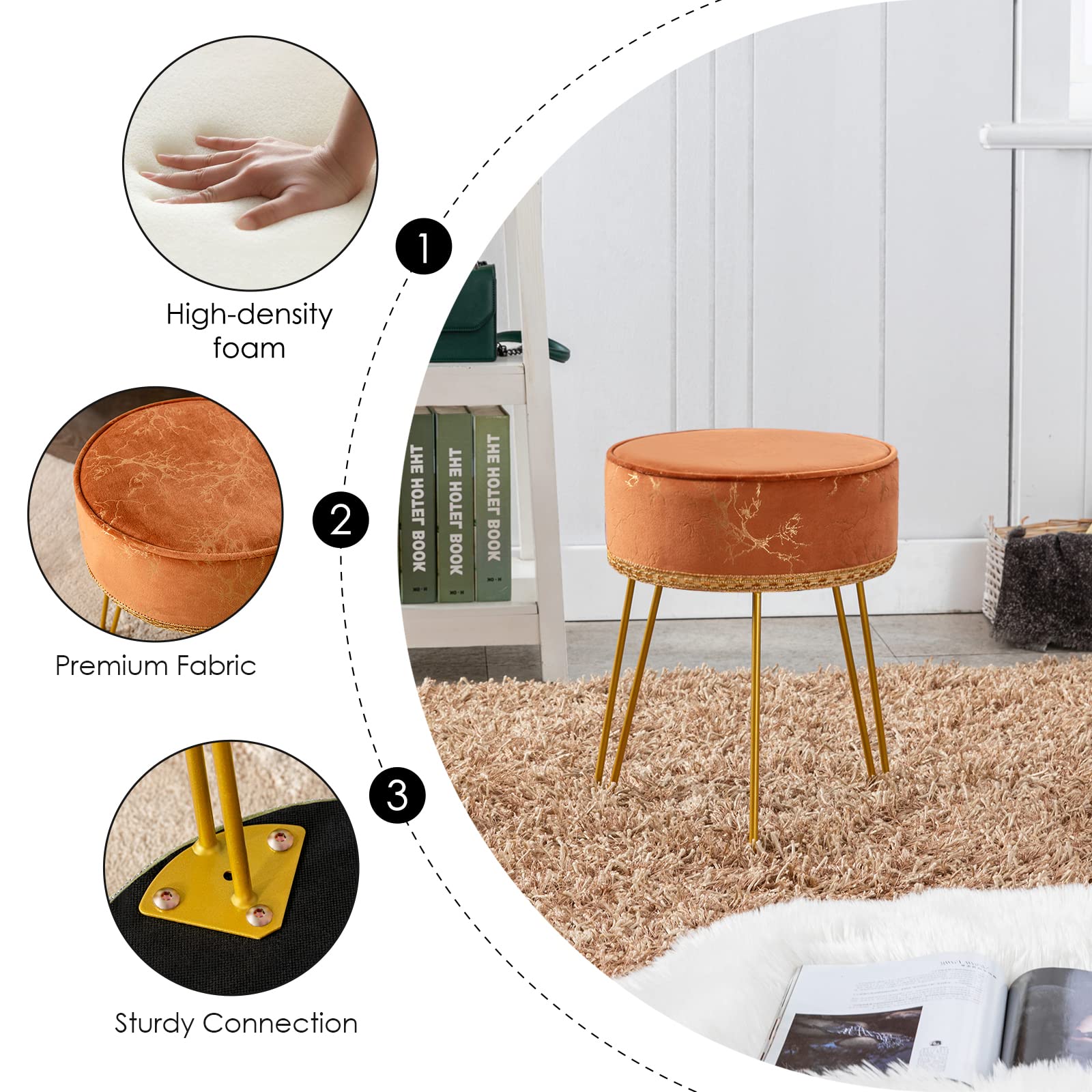 - Multiple Using Scenarios: This wonderful vanity stool is made of premium fabric. It is a fabulous and practical makeup stool and footrest. Moreover, this ottoman can also be a gorgeous decor for your lovely home as its elegant and modern design.