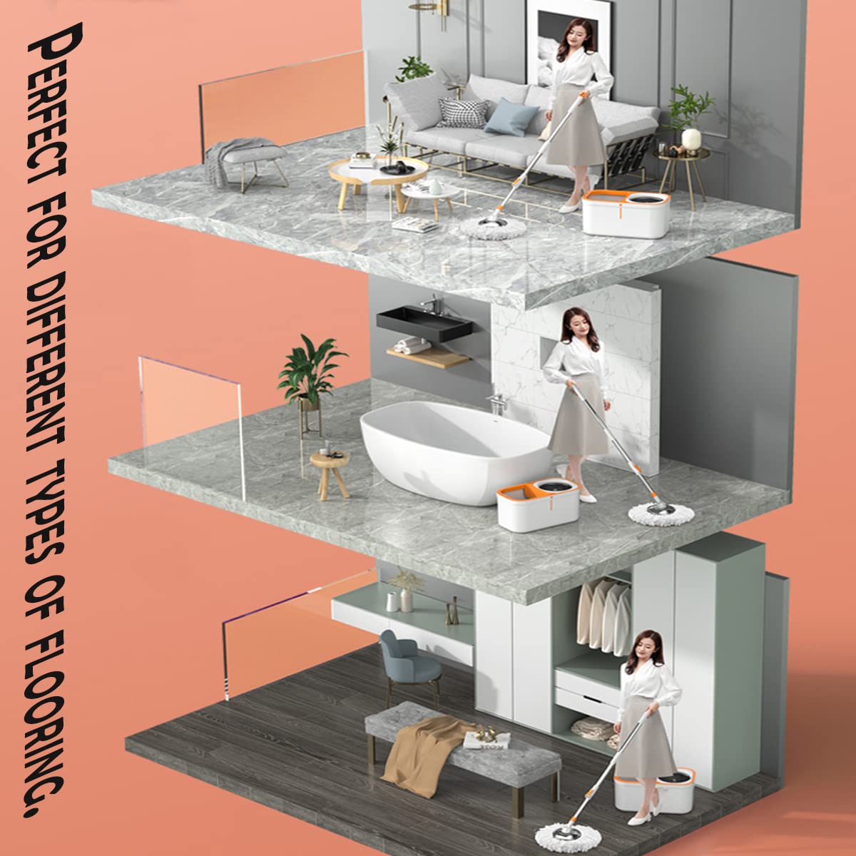 - Quick-Dry Centrifugal System The spin mop bucket features a 500-drain-hole design and high-speed centrifugal spinning mechanism (up to 1200 RPM) that removes 95%+ moisture in 15 seconds. This aerodynamically optimized basket generates 2.3G centrifugal force - equivalent to commercial-grade cleaning equipment - ensuring mop pads dry 3X faster than conventional wringing methods.