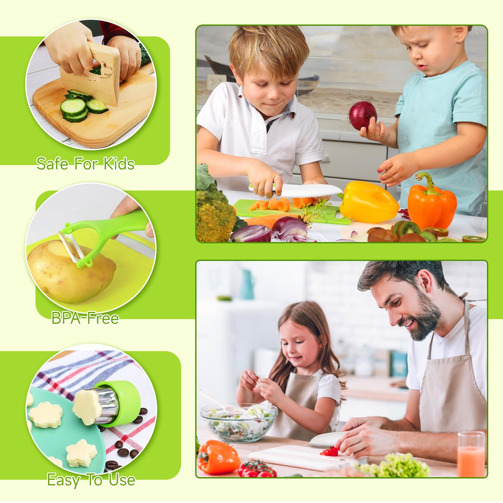 - 👩🏻🍳🎁【CHRISTMAS GIFTS FOR KIDS】Your kids will be eager to join you with this toddler knife set in kitchen. Stimulate kid's interest and let them enjoy cooking time with your family. Through their own practice, children can improve their hands-on ability, promote parent-child relationship, and learn the healthy living habits of parents. It will be a good gift for children on birthdays or holidays.