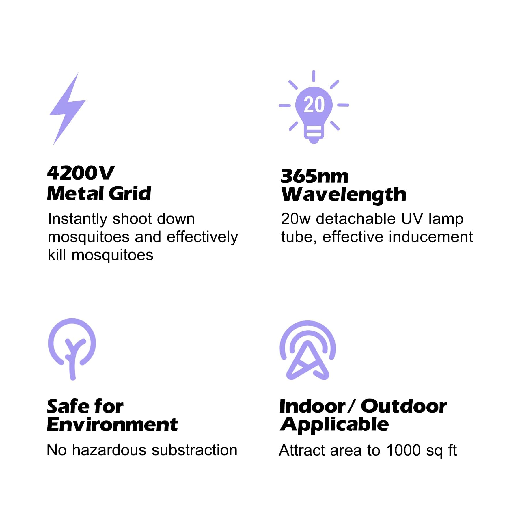 - Effective Mosquito Killer: Equipped with a high-voltage grid that delivers 4000 V of power, our Mosquito Zapper effectively eliminates mosquitoes upon contact