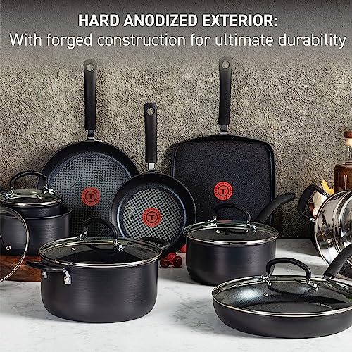 T-fal Ultimate Hard Anodized Nonstick Cookware Set 14 Piece Oven Safe 400F, Lid Safe 350F Pots and Pans, Dishwasher Safe Black