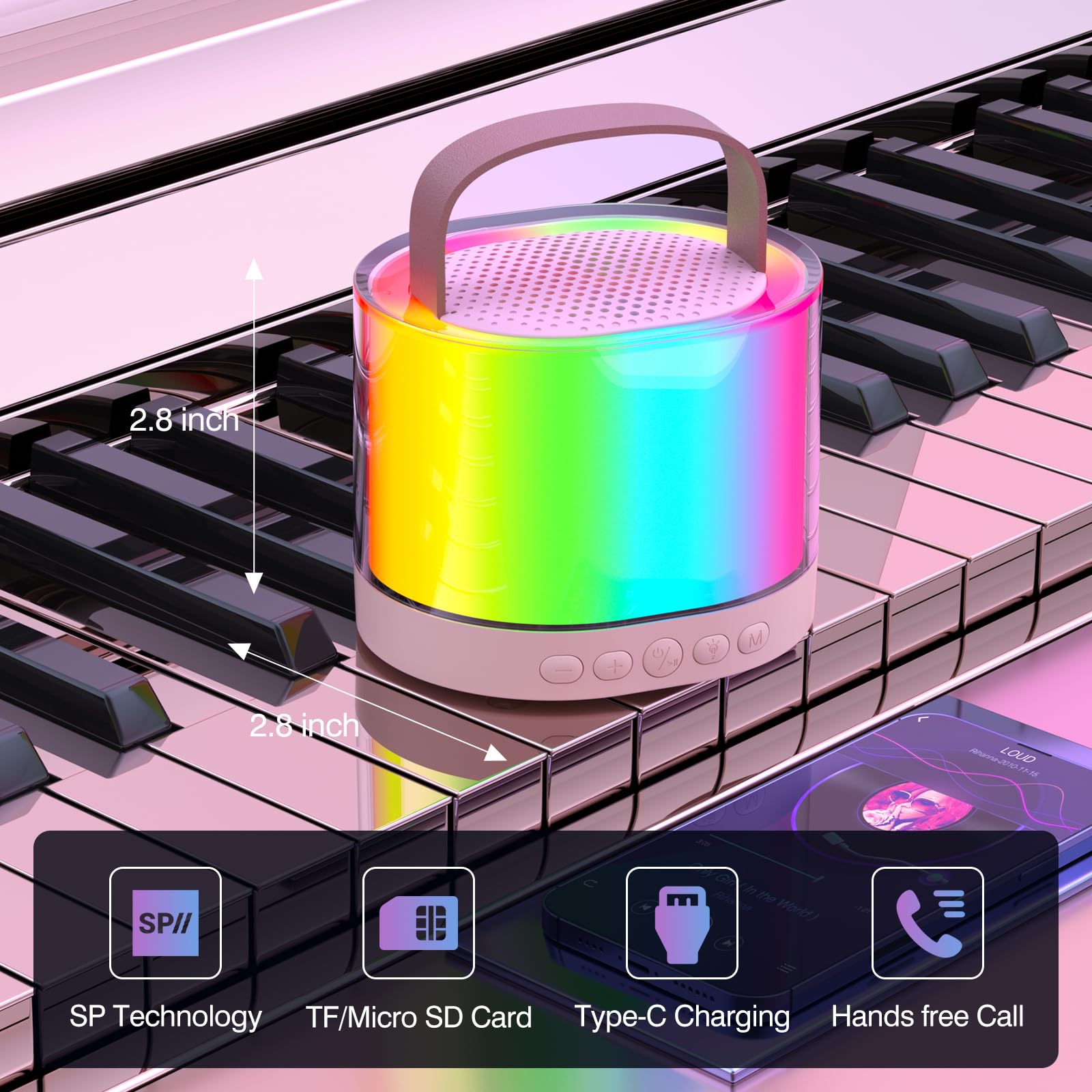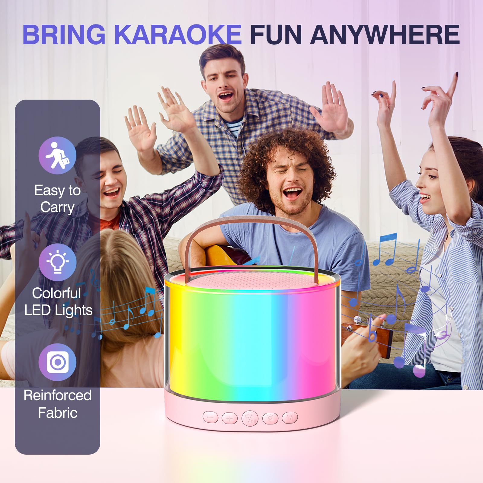 - DUAL KARAOKE MICROPHONE — Instant Connection Mini karaoke machine equipped with the latest Bluetooth 5.3 support Micro TF card and AUX input, compatible with mobile phones, TVS, ipads, tablets, PCS, no cable required. Mini karaoke machine with 2 microphones allows you to sing as loud as you would at a KTV, bar, PROM party.