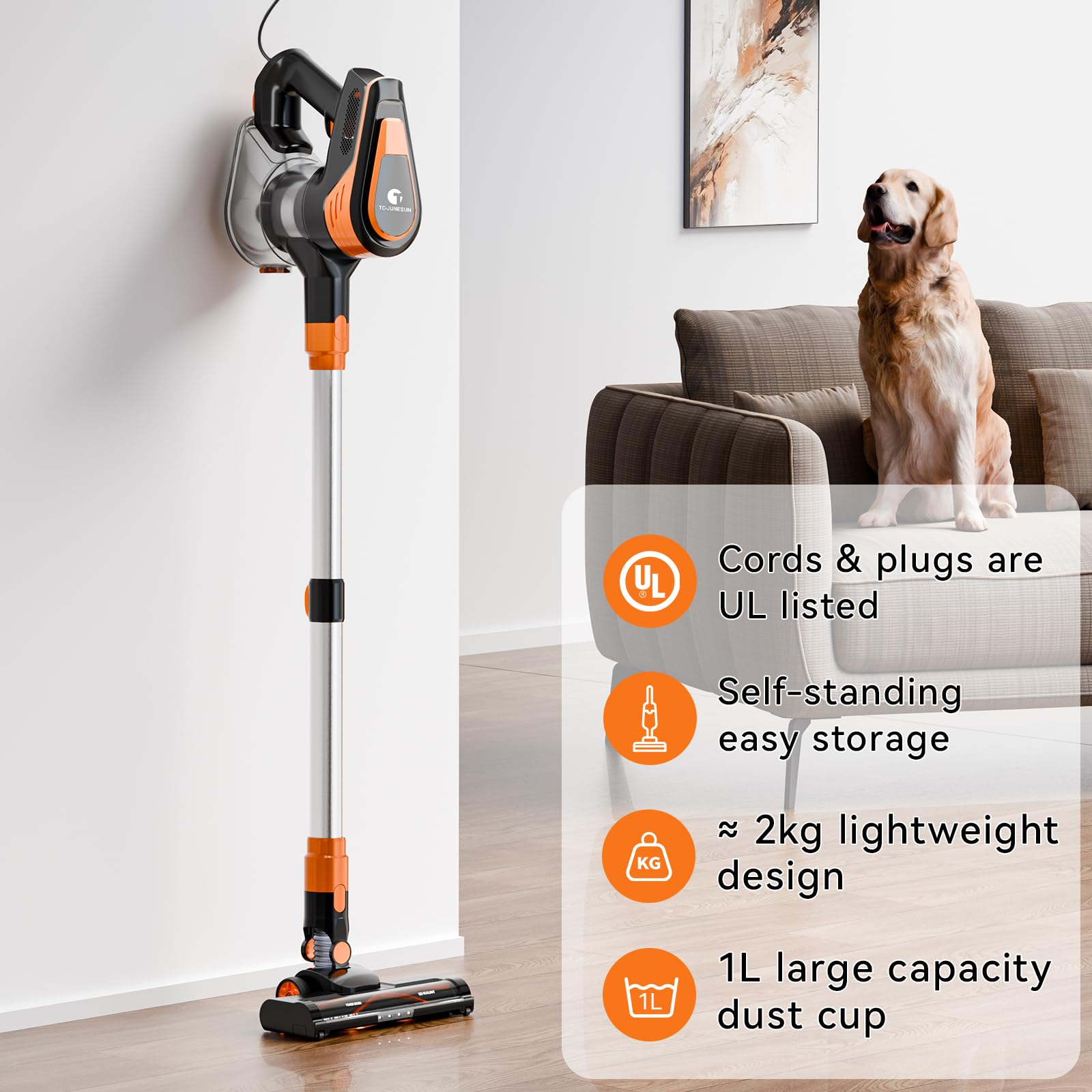 - 🍀【Powerful Suction】 This 120V corded stick vacuum features a 550W motor for strong suction, effortlessly cleaning up pet hair, pet food, paper scraps, snack crumbs, and other debris to keep your home tidy.