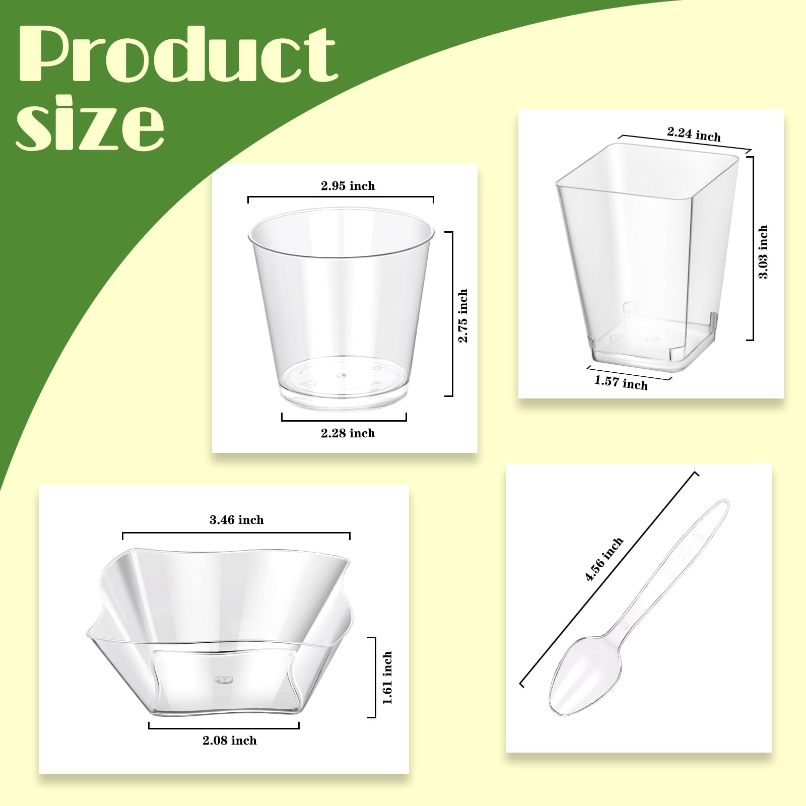 - 【High-Quality Materials】: The clear dessert cups and spoons are made of food-grade high-quality, sturdy, durable materials. Our appetizer cups are made of thickening materials that are not easily broken or deformed and can be reused