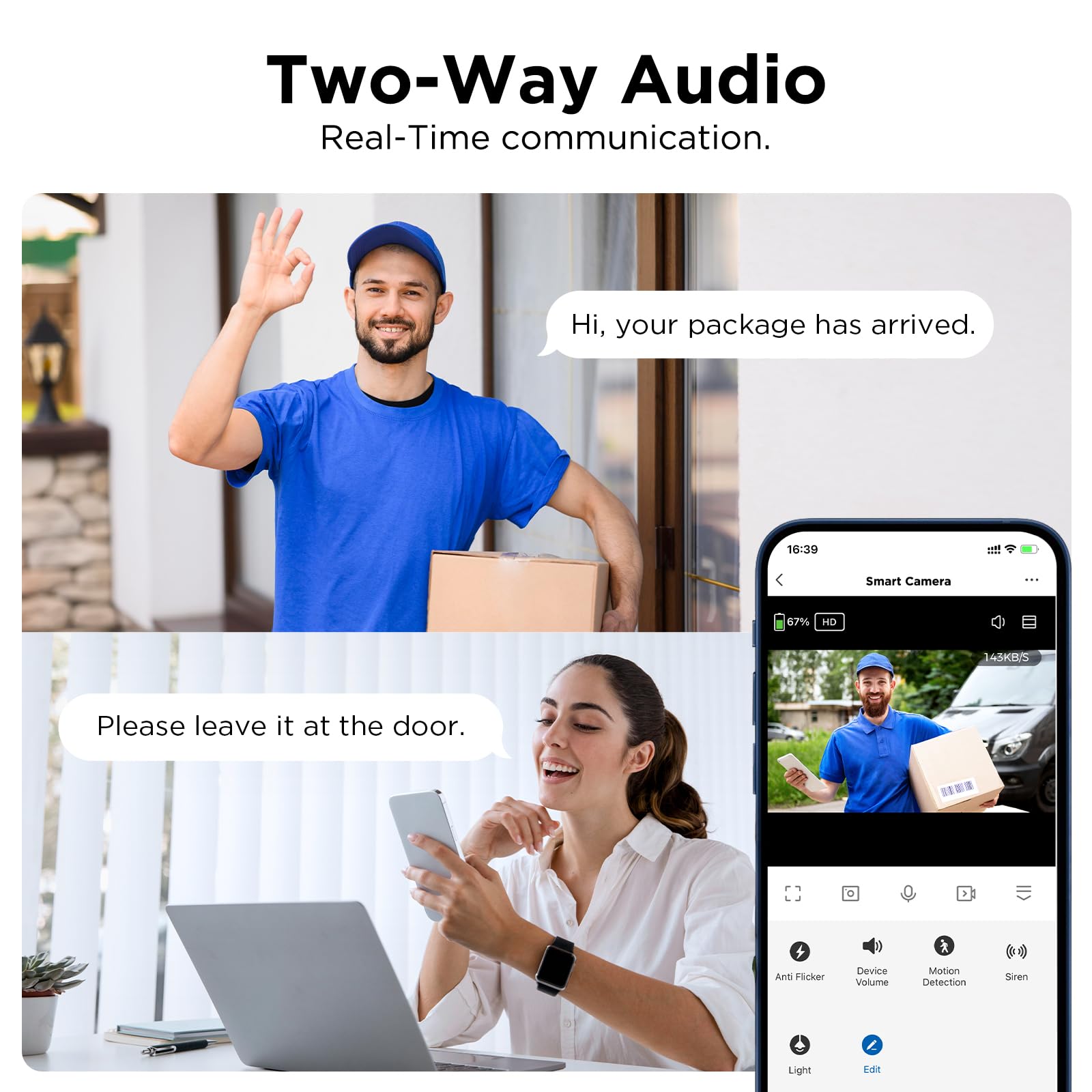 - 2K HD Resolution: 2K QHD resolution and 153° wide angle provide clear images, infrared LED and f/1.8 aperture, User could clearly see the surveillance details day or night.