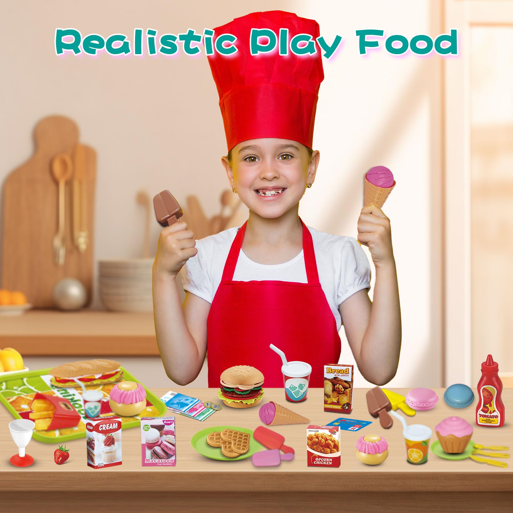 - ENGAGING PLAY HOUSE TIME: A realistic menu lists various tasty treats and their prices, allowing children to practice basic math skills such as counting, addition, and subtraction. Play money with different denominations of banknotes and coins, adds an element of realism to the pretend play, helping kids understand the concept of money management and value. It also builds social skills as kids take turns being the cashier or the customer, practicing polite conversation and customer service