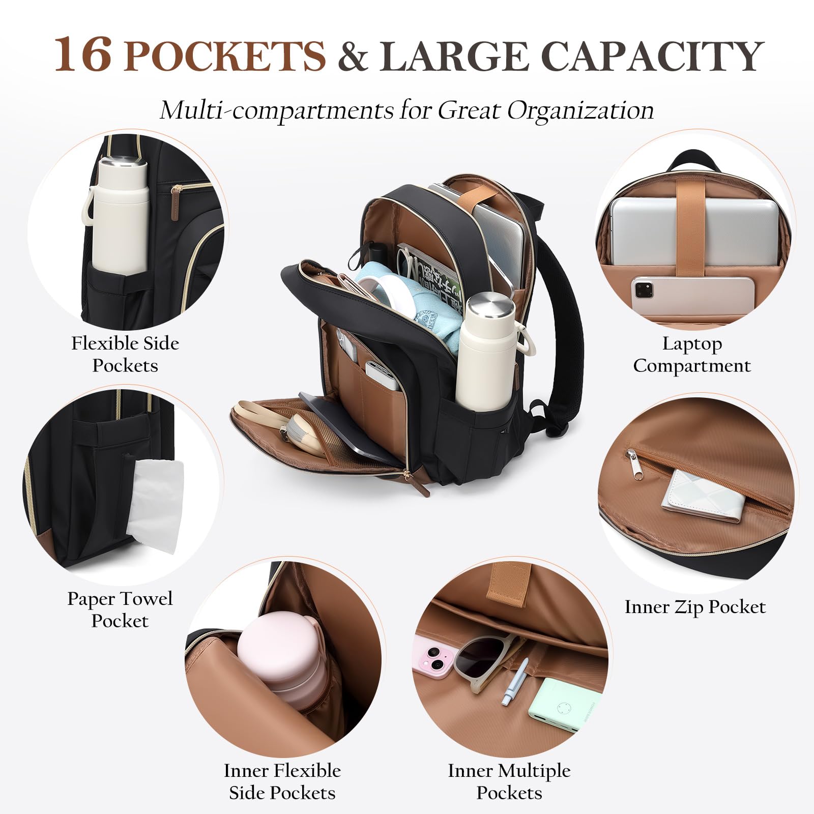 - LARGE CAPACITY & PLENTY OF COMPARTMENTS: Travel Backpack for women men With the well-designed compartments, you can easily separate and store your 16-inch laptop, books, supplies and more. Spacious organizer compartments for daily essentials and tech accessories. The front compartment features multiple pockets, pen pockets and keychain hooks to keep your belongings organized and easier to find. Side pockets for water bottles and umbrellas, everything has its place.