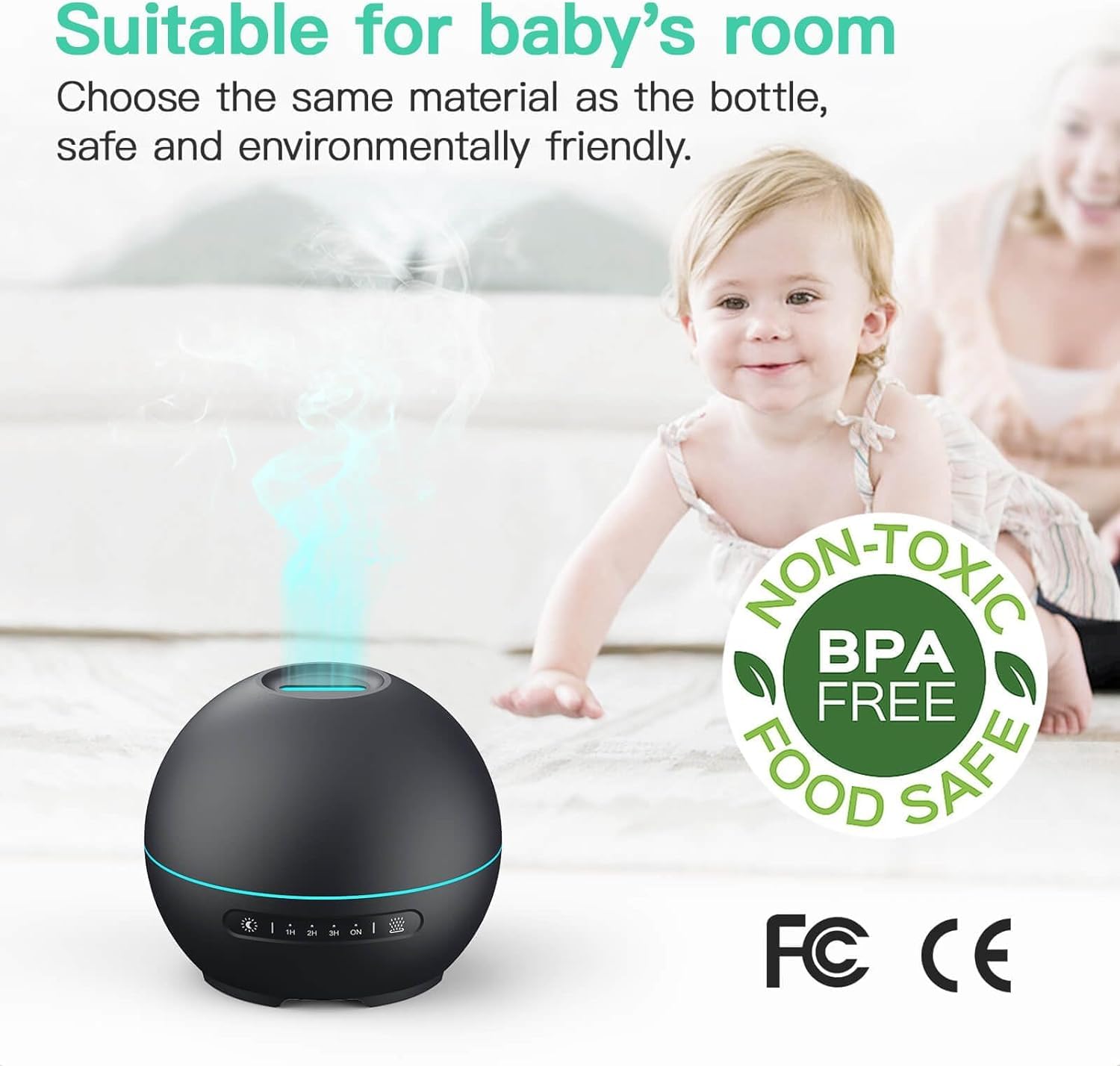 - Safe & Sustainable Aroma Diffuser: Made from durable ABS+PP materials, free from BPA, and certified by UL, FCC, and CE for safety. This air diffuser is excellent for use in baby rooms, nurseries, or classrooms, ensuring a safe and soothing environment for children and students