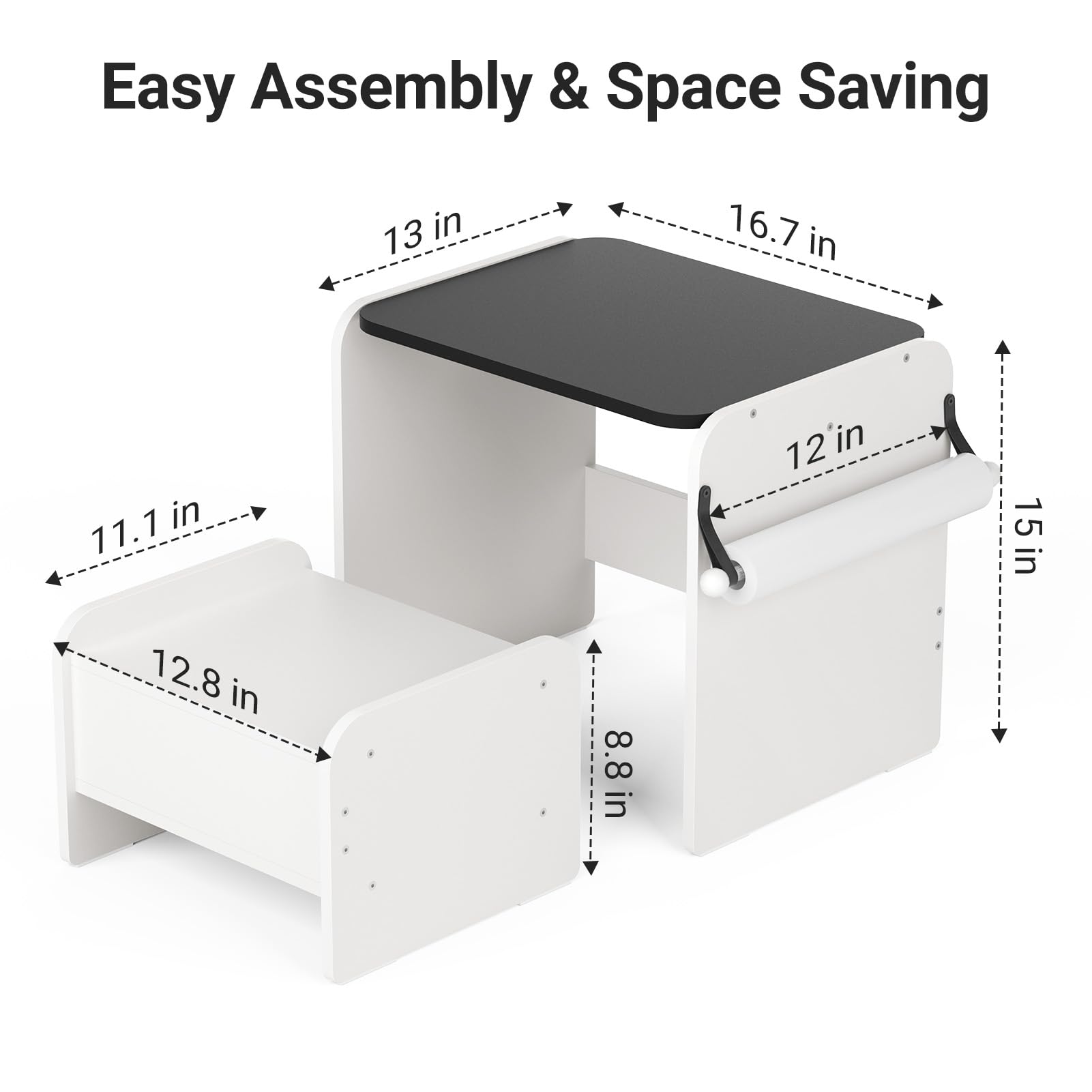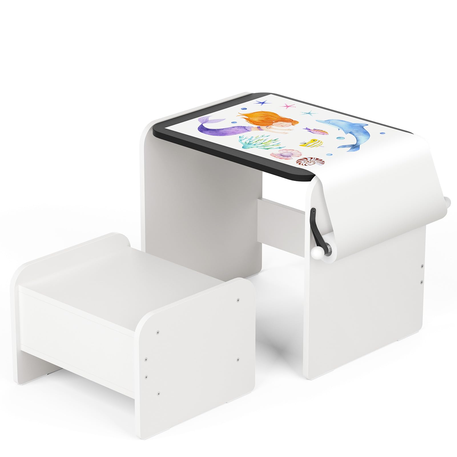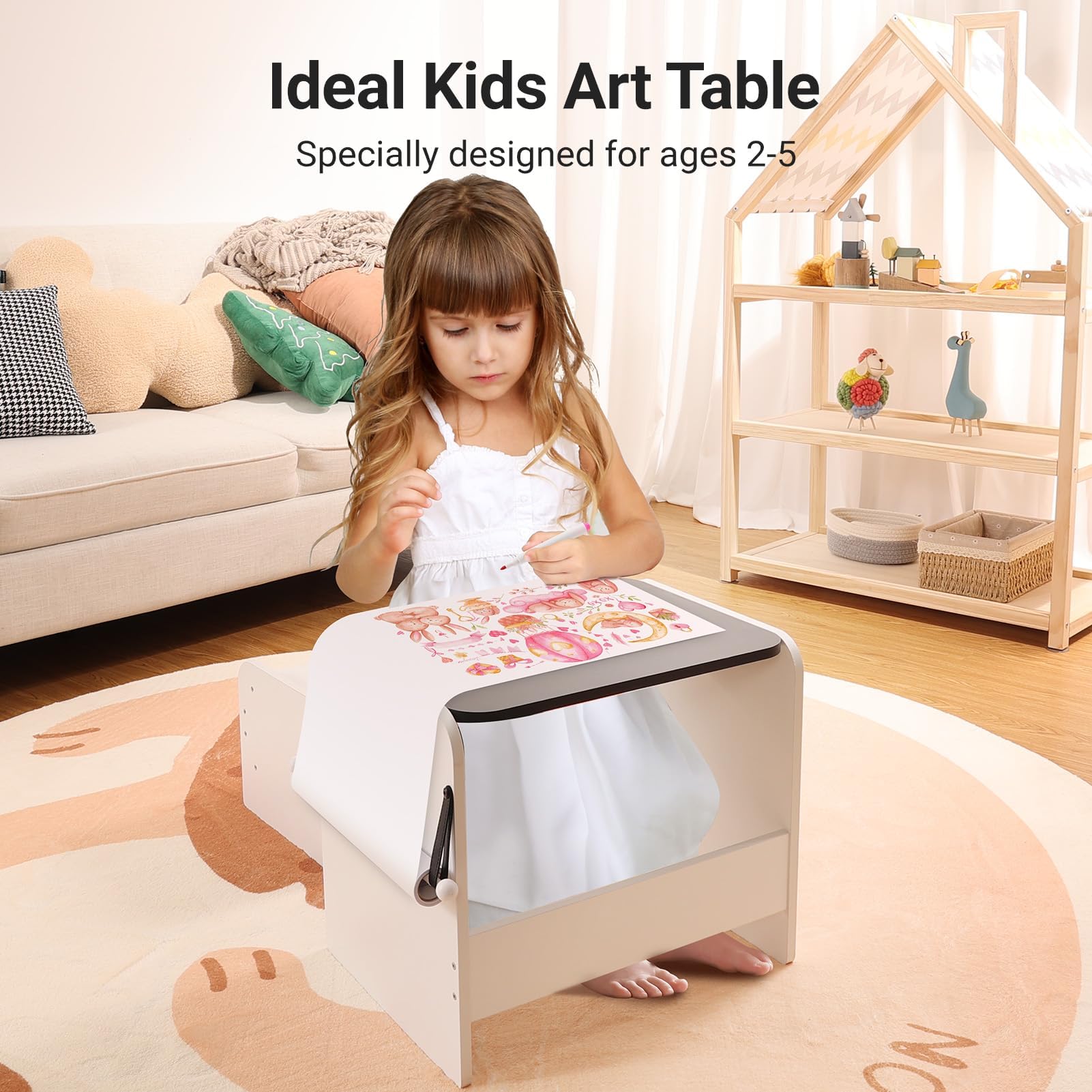 - 3-IN-1 KIDS ART STATION - Equipped with a paper roll holder and chalkboard, this kid art table offers multiple mediums for your child to express their creativity. Whether they prefer markers or chalk, this table has it all. Plus, it can also serve as an activity table for playing, making it a versatile addition to your child's playroom