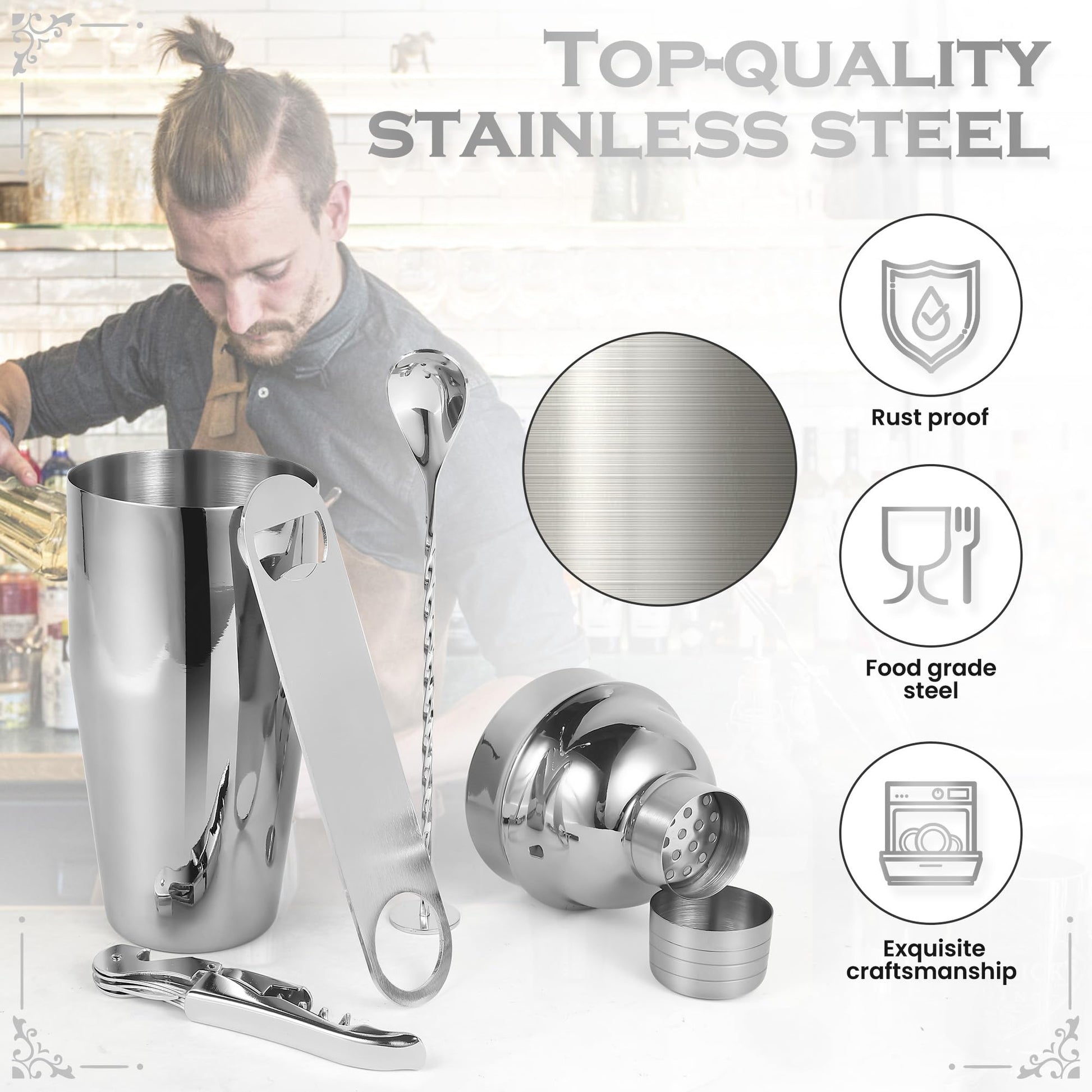 - ๐น Superior Mixology Experience: This bar set features a high-quality cocktail shaker set, a variety of drink mixers, and all the tools you need to craft the perfect cocktail. Whether you're a novice or a seasoned bartender, this mixology bartender kit ensures a flawless drink mixing experience every time.