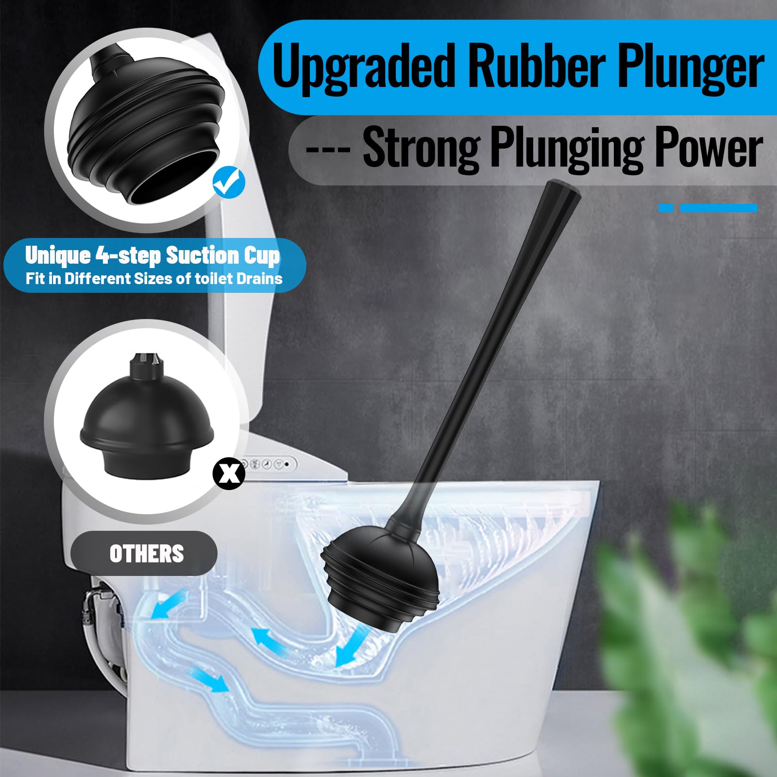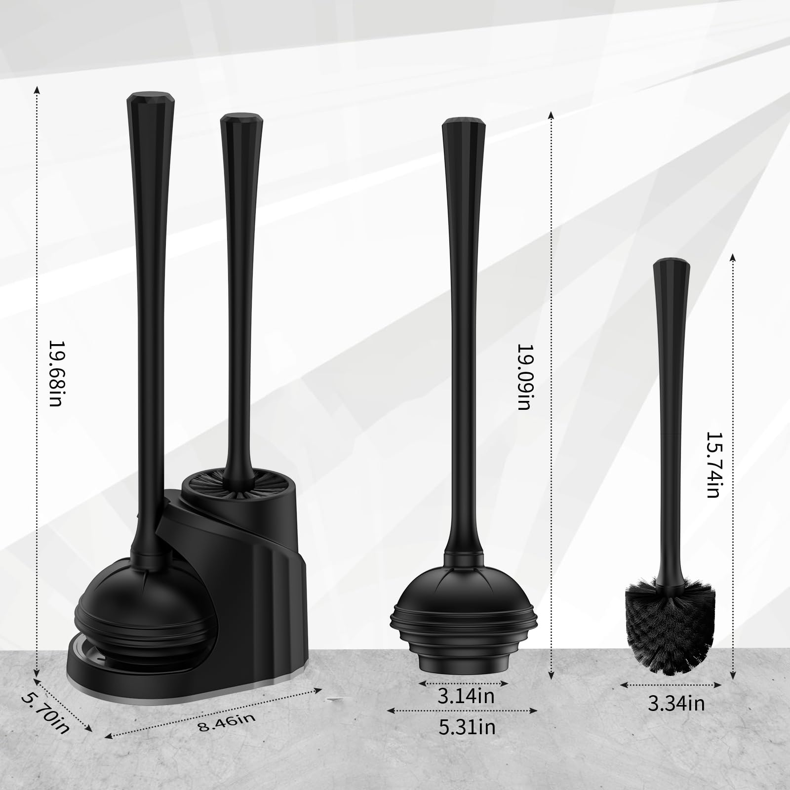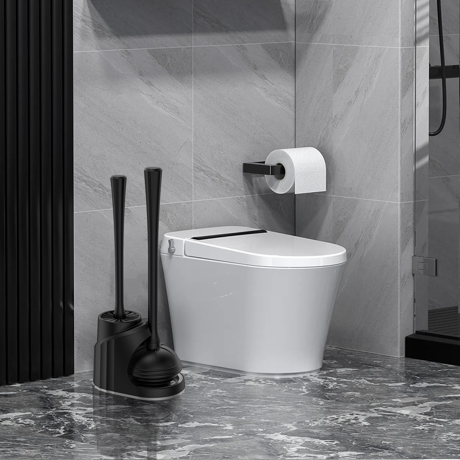 - Efficient & Universally Compatible Toilet Plunger and Brush Set: Our toilet plunger with holder is an must-have bathroom accessory, made of premium pp material, resulting in their softness and flexibility, without any unfavorable odor. Our toilet plunger heavy duty creates a secure seal over toilet,tub,shower, and sinks, providing powerful suction. Therefore, the bathroom plunger can effectively remove stubborn clogs from toilets and sinks, ensuring a hassle-free clean bathroom.
