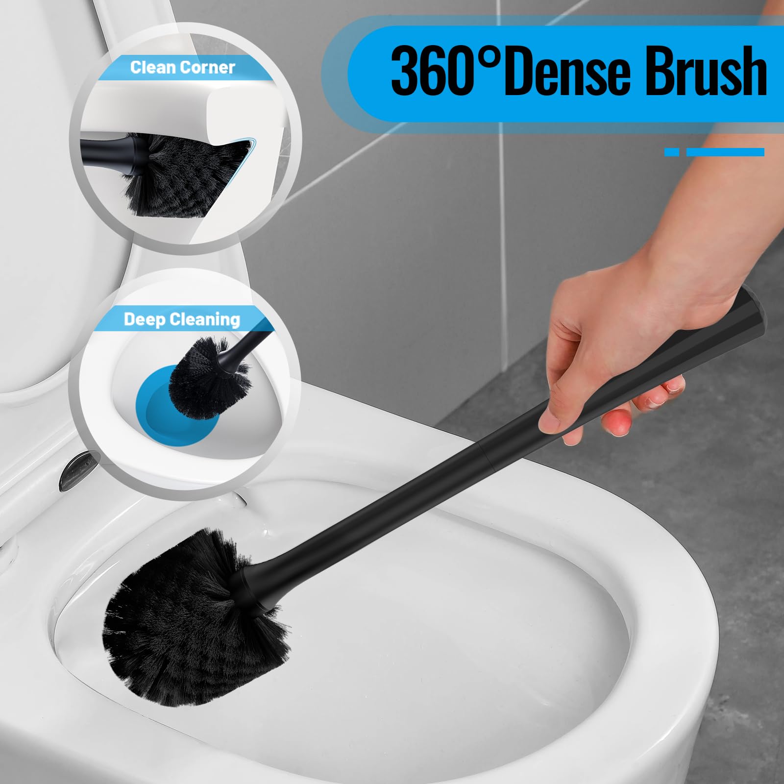 - 360° Deep Cleaning: The toilet brush head has a classic hemispherical shape that thoroughly deep cleans beneath the toilet rim and in hard-to-reach corners. In addition, the dense nylon bristles on the toilet bowl brush effectively remove dirt from every corner of your toilet without discoloring or staining. Meanwhile, water easily drips from the toilet cleaner brush bristles into the holder. And the toilet bowl cleaner brush will not deform or scratch the toilet even after long-term use.