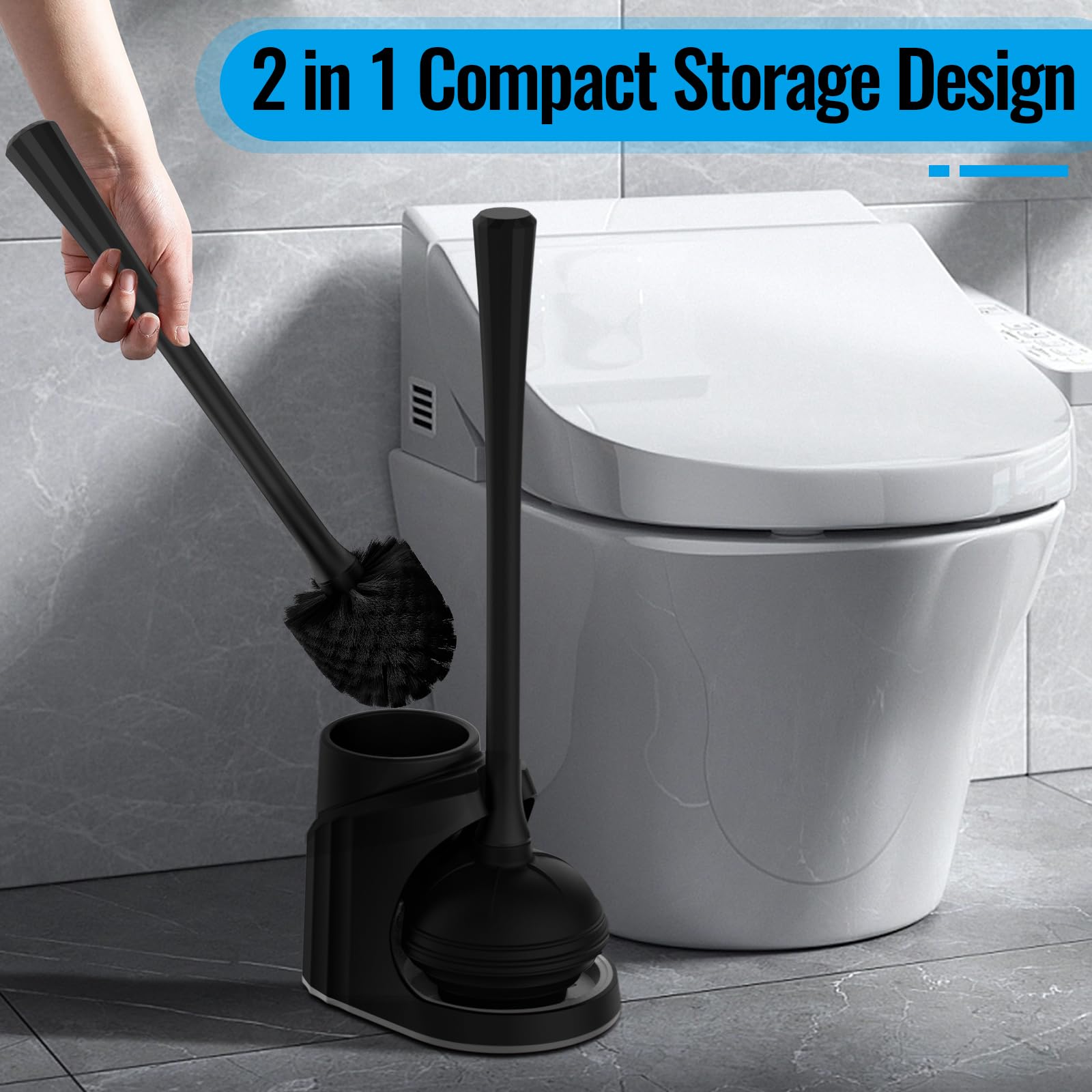 Toilet Plunger and Brush Set, 2 in 1 Heavy-Duty Toilet Brush and Holder Set, Black Toilet Plunger with Holder and Toilet Bowl Brush and Holder for Bathroom, Compact Toilet Bowl Brush and Plunger Set