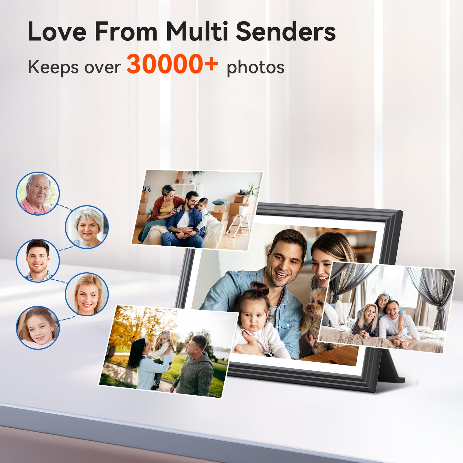 - 【More Powerful Memory】Tolove Digital Picture Frame This WiFi digital photo frame offers you , built-in 16GB memory, allowing you to store over 50,000 photos in the electronic picture frame (based on an average photo size of around 300KB). It's the perfect extension album for your phone photos! In addition, it also supports Mirco SD card import and export of photos or videos, making it easier for you to manage your photo album.