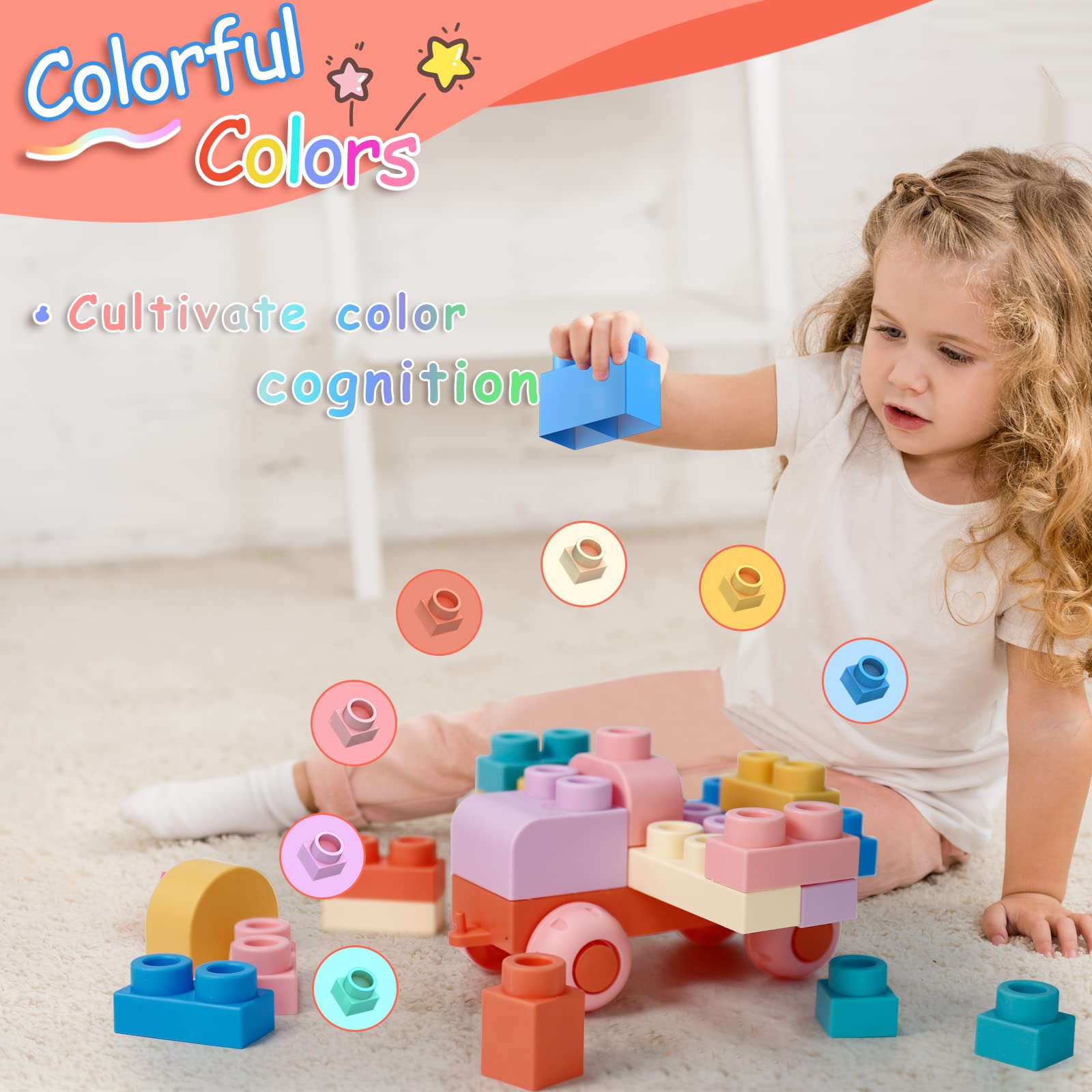 - Large Particle Building Block Toys:Our toys have the following certificates: ASTM, CPSIA, CPC. It is very safe and reliable.Our building blocks are more suitable for babies. The smallest size of them is 1.2 * 1.2 inches. The building block building experience is very friendly, with a moderate tightness and rich and colorful colors. Through the improvement of the process, our building blocks are bendable and soft, and the touch is more comfortable for babies.